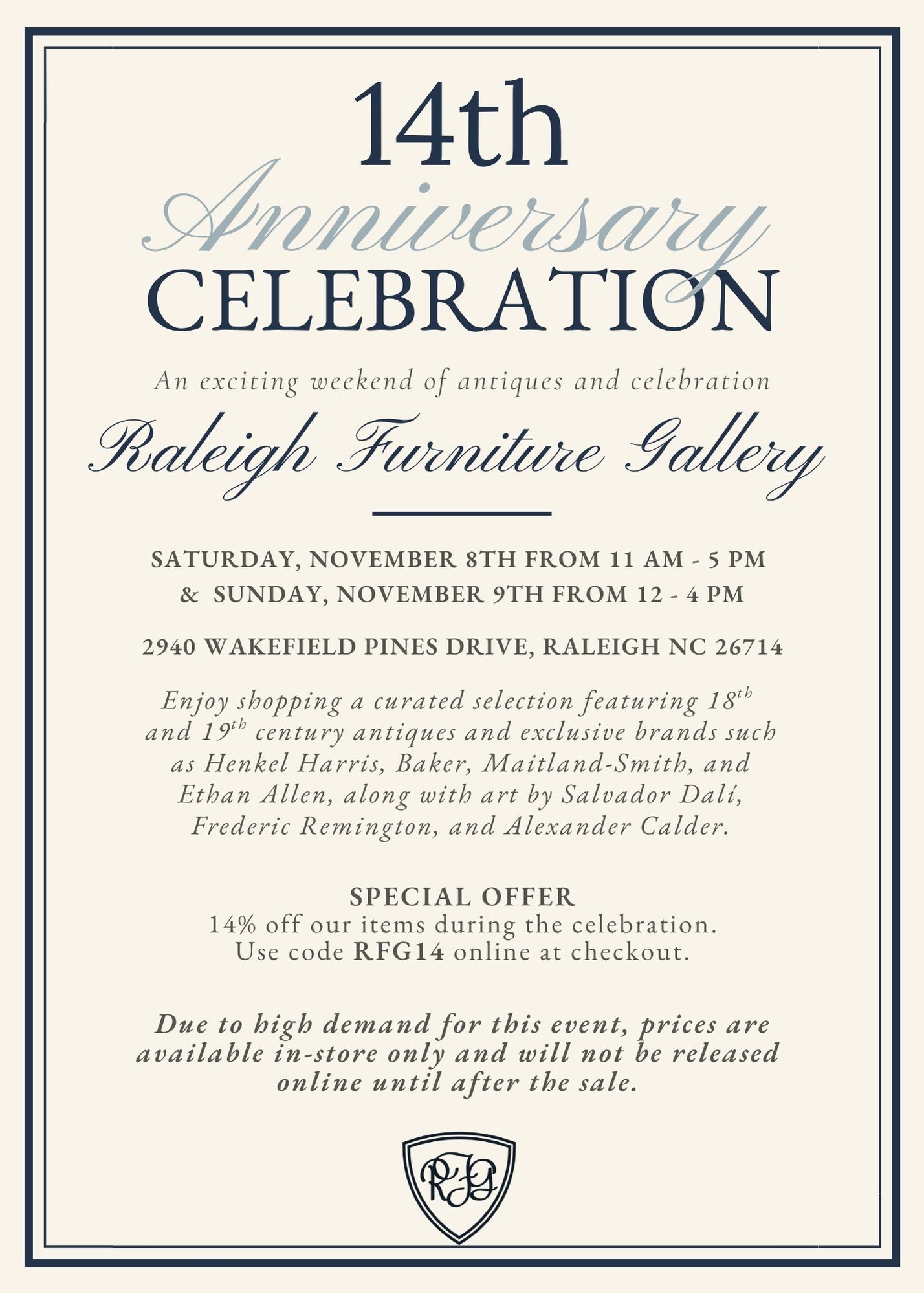 Having pieces in thousands of homes in the Raleigh, NC area and hundreds across the nation, Raleigh Furniture Gallery is the premier Raleigh furniture and antique store in the area.
