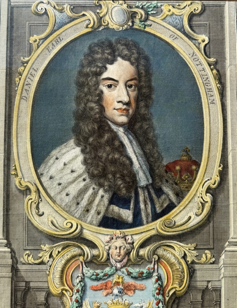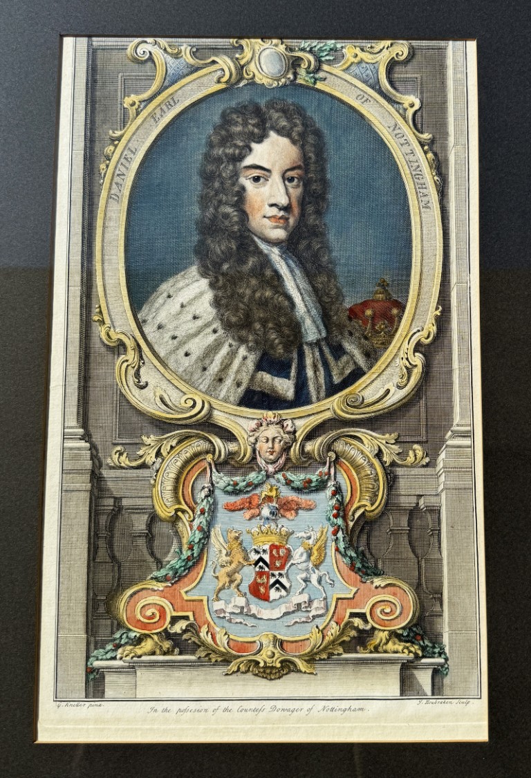1741 Hand Colored Engraving of Daniel Earl of Nottingham by Jacobus Houbraken