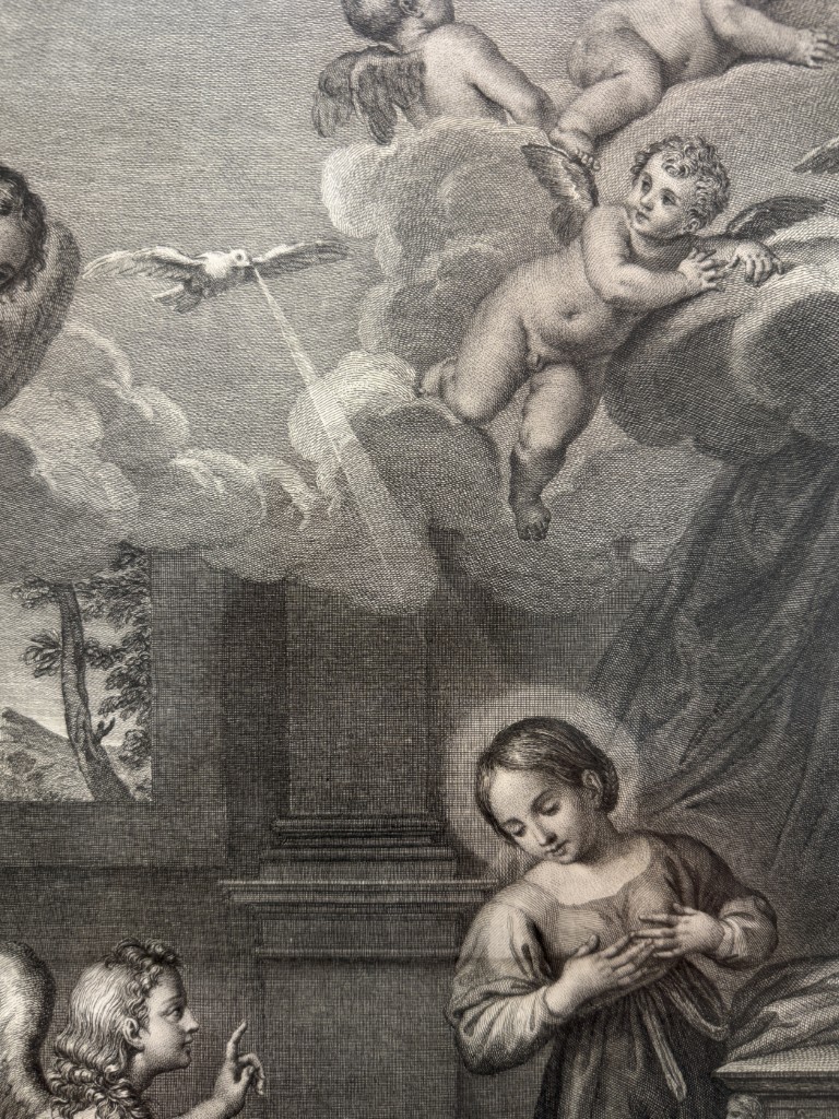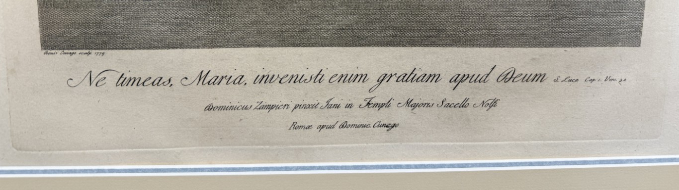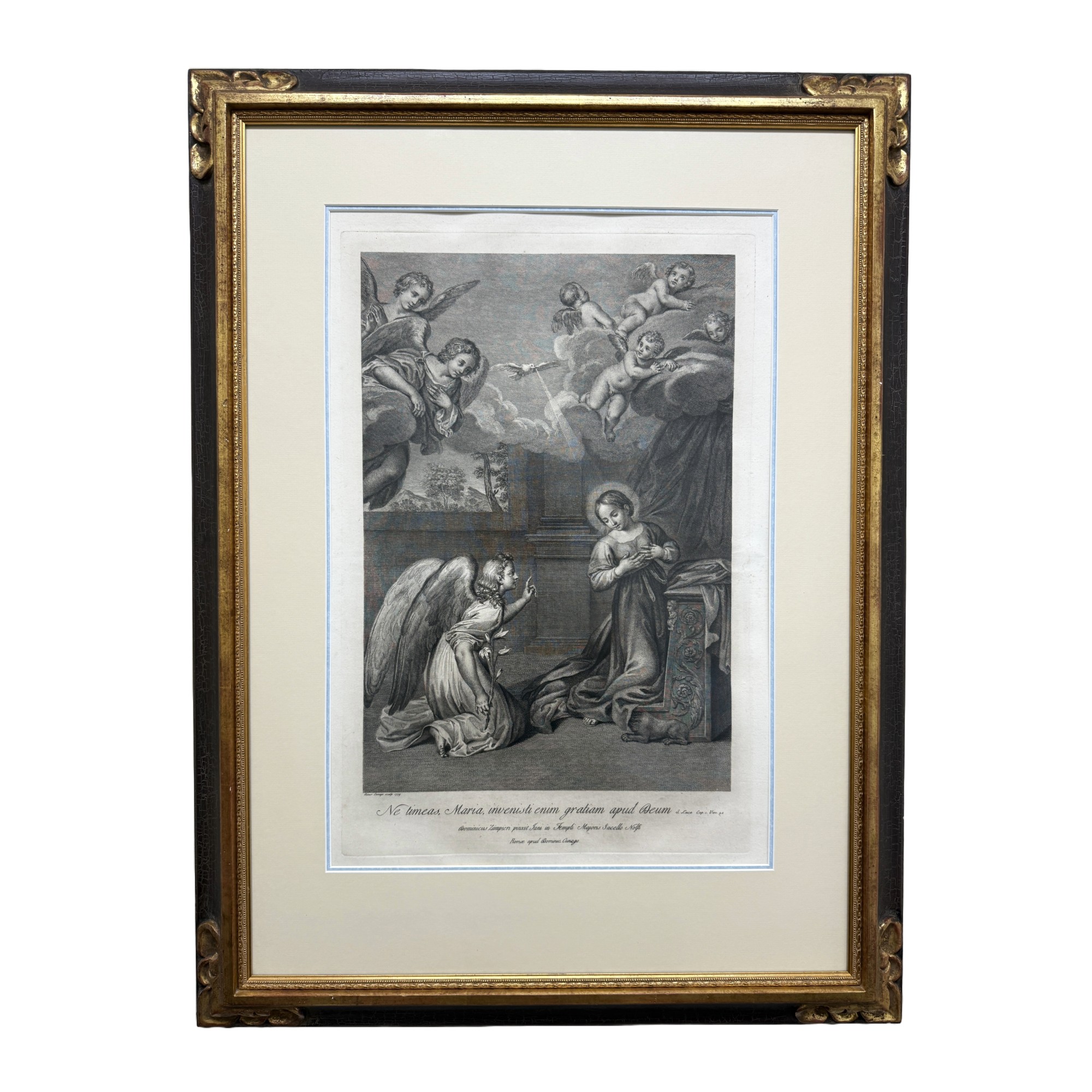 1779 Dominic Cunego Engraving of the Annunciation After Dominicus Zampieri