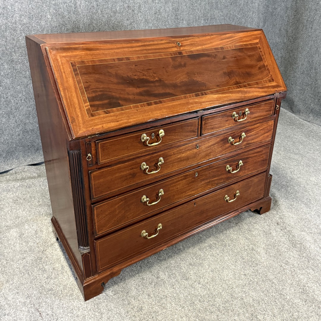 18th Century Inlaid Mahogany Slant Front Desk with Hidden Compartments