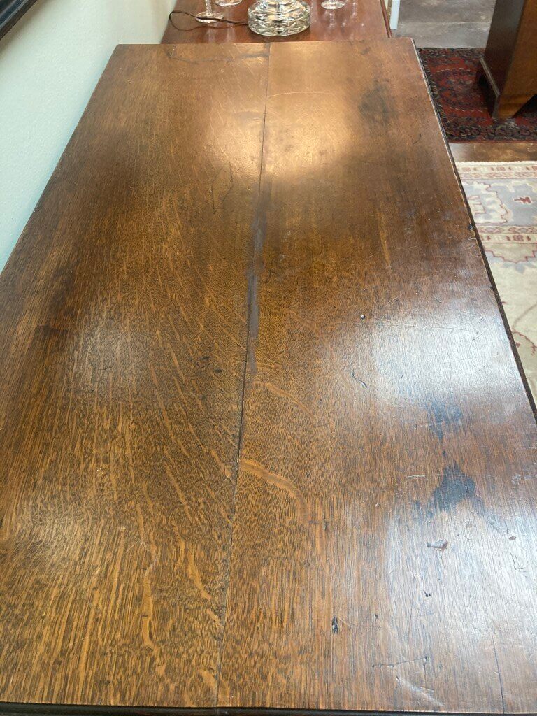 Your happiness with this item is of the utmost importance to us so please review the photographs carefully for condition. We endeavor to try and list any issues we may observe; we may not necessarily note all minor nicks and dings or we may simply miss something. Please inspect carefully to ensure your full happiness with this item. For this particular piece we found wear consistent with age and prior use, such as repairs and stains to the top surface as pictured.
