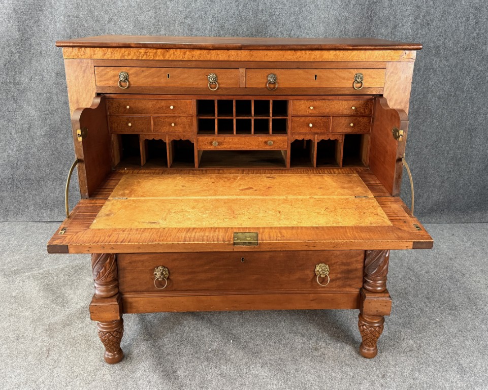 Your happiness with this item is of the utmost importance to us so please review the photographs carefully for condition. We endeavor to try and list any issues we may observe; we may not necessarily note all minor nicks and dings or we may simply miss something. Please inspect carefully to ensure your full happiness with this item. For this particular piece we found wear consistent with age and prior use, including some general wear on interior leather and a chip to desk corner (decorative).