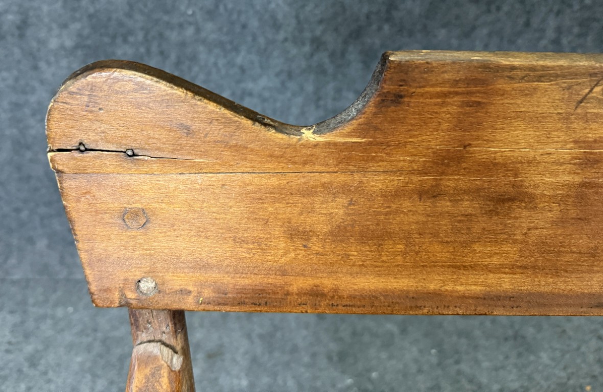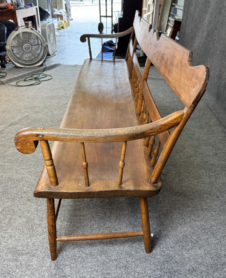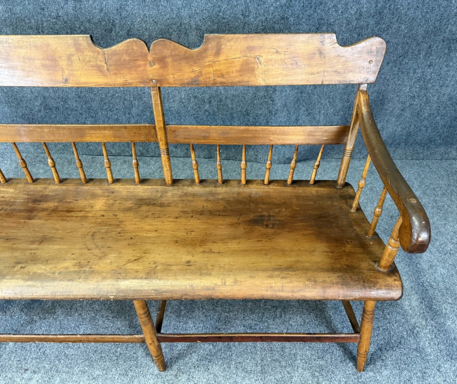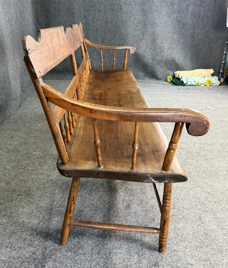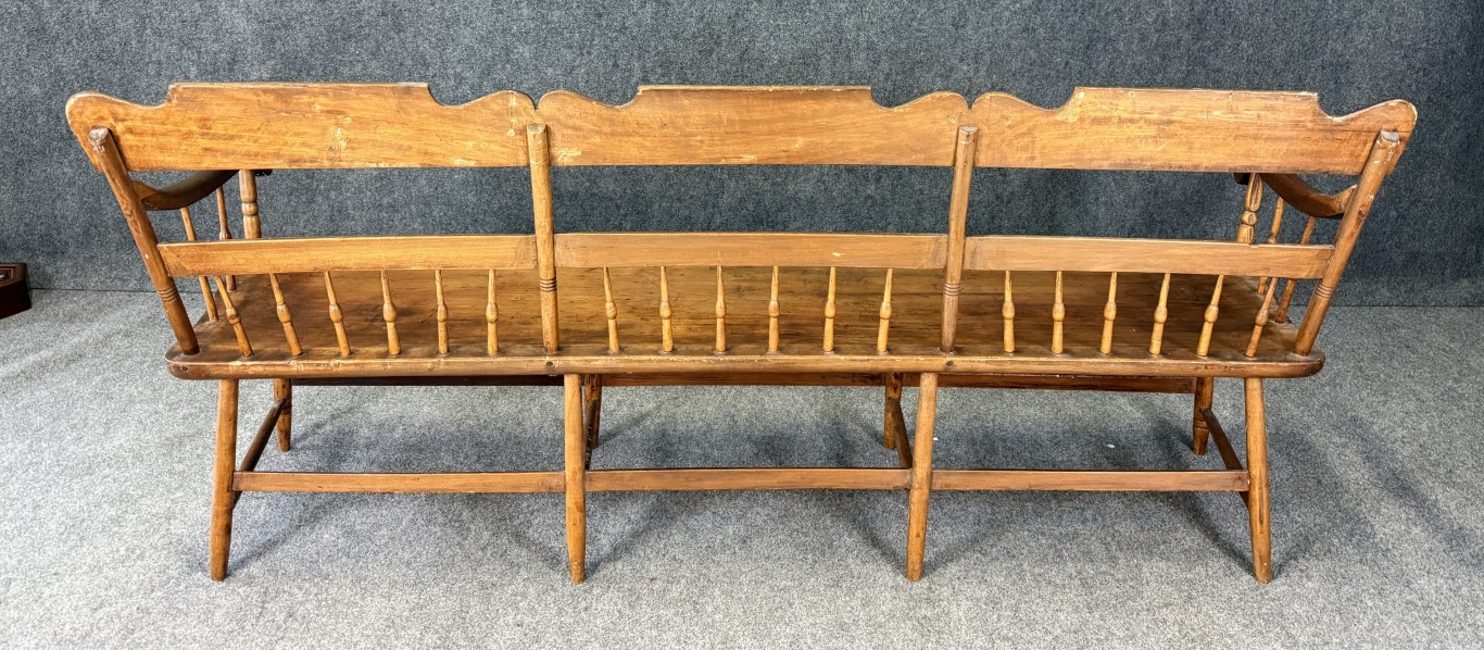 Your happiness with this item is of the utmost importance to us so please review the photographs carefully for condition. We endeavor to try and list any issues we may observe; we may not necessarily note all minor nicks and dings or we may simply miss something. Please inspect carefully to ensure your full happiness with this item. For this particular piece we found wear consistent with age and prior use, including a crack to far left back rest, slight wobbling joints, and general scuffs and nicks.