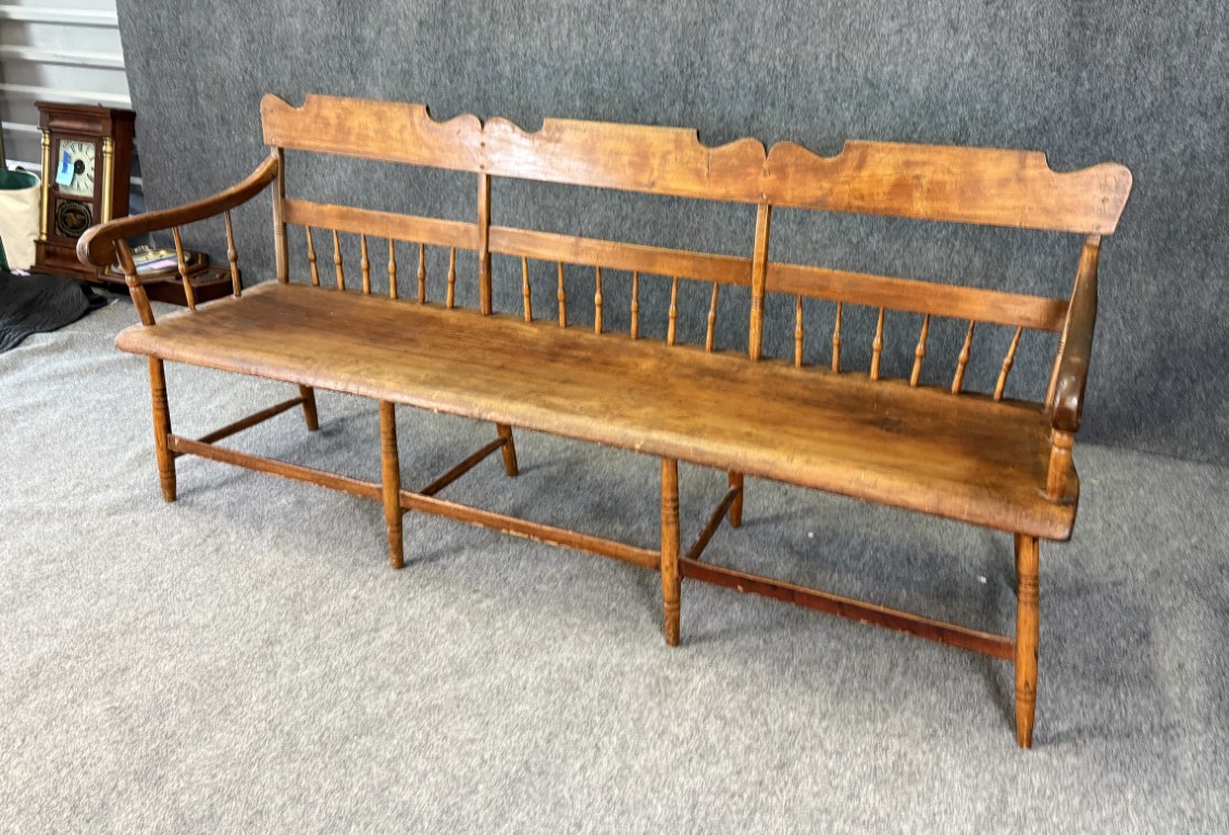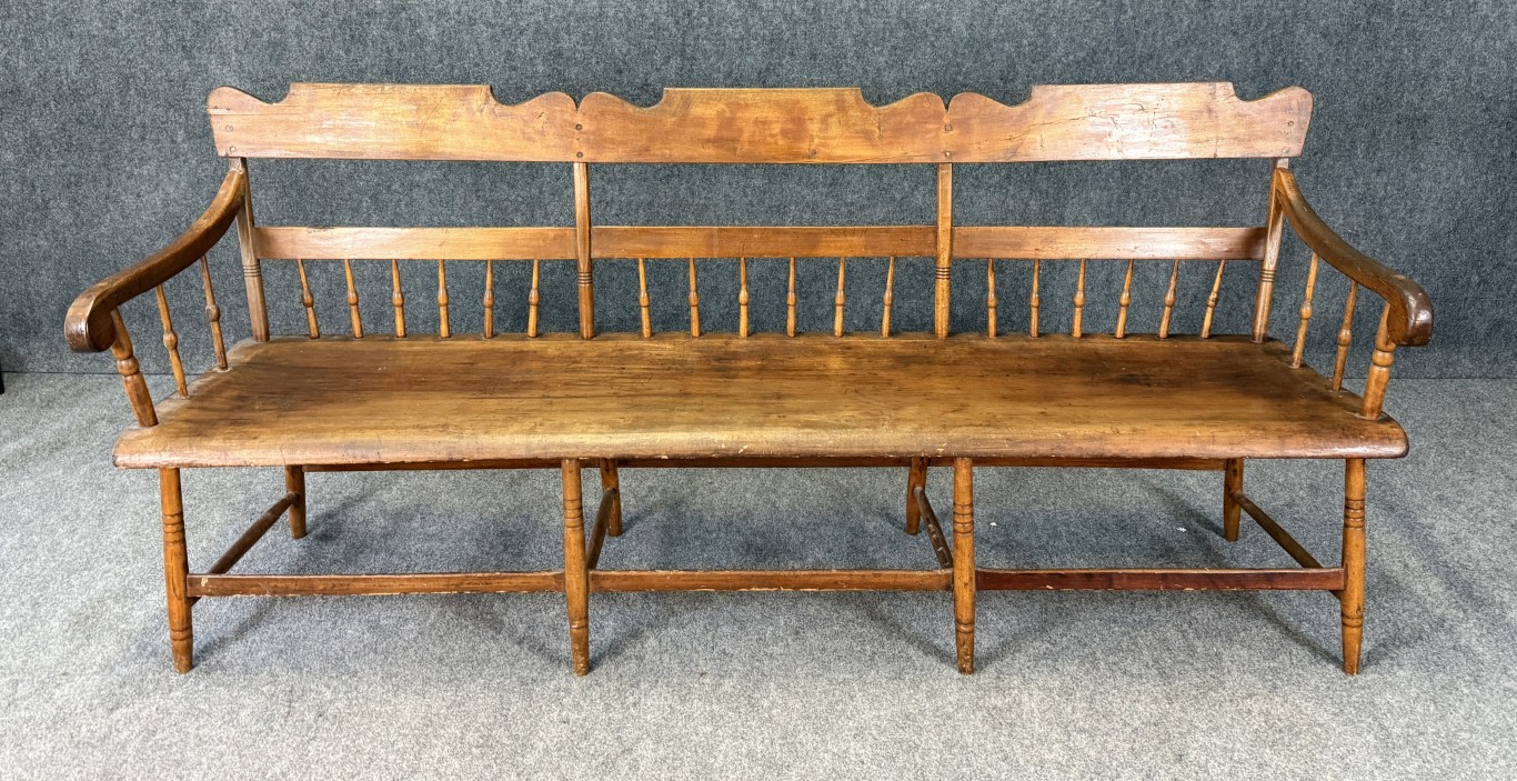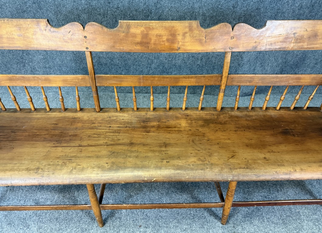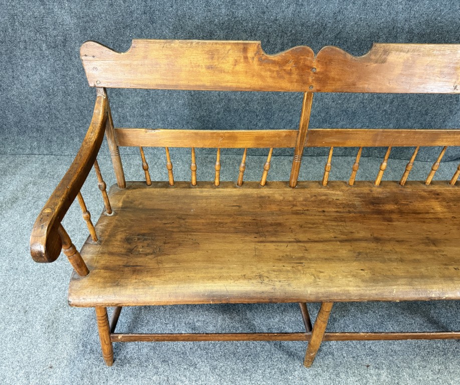 Your happiness with this item is of the utmost importance to us so please review the photographs carefully for condition. We endeavor to try and list any issues we may observe; we may not necessarily note all minor nicks and dings or we may simply miss something. Please inspect carefully to ensure your full happiness with this item. For this particular piece we found wear consistent with age and prior use, including a crack to far left back rest, slight wobbling joints, and general scuffs and nicks.