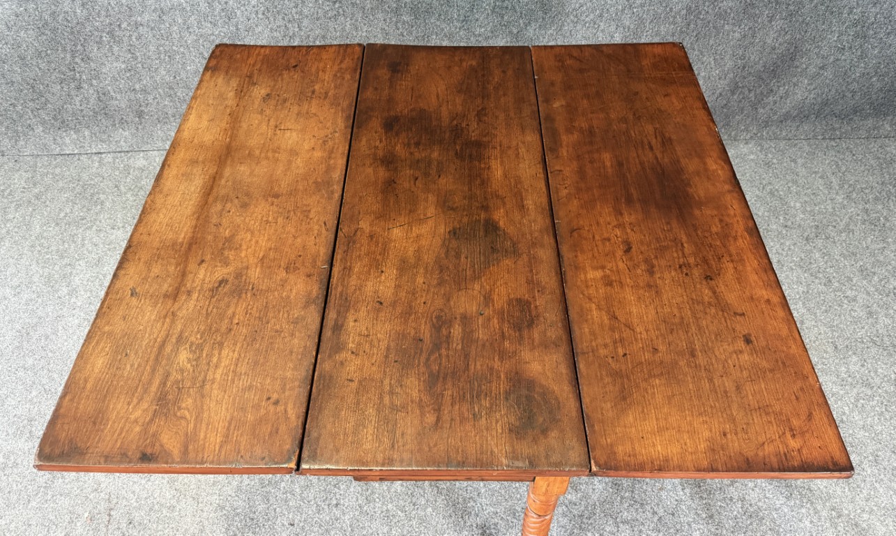 Your happiness with this item is of the utmost importance to us so please review the photographs carefully for condition. We endeavor to try and list any issues we may observe; we may not necessarily note all minor nicks and dings or we may simply miss something. Please inspect carefully to ensure your full happiness with this item. For this particular piece we found wear consistent with age and prior use, including a slight wiggle, one warped leaf, and general marks and wear on the table top.