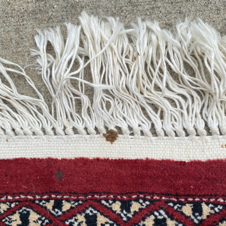 Your happiness with this item is of the utmost importance to us so please review the photographs carefully for condition. We endeavor to try and list any issues we may observe; we may not necessarily note all minor nicks and dings or we may simply miss something. Please inspect carefully to ensure your full happiness with this item. For this particular piece we found minor wear consistent with age and prior use, including a brown stain smaller than a dime on the fringe and a slightly faded area on one end.