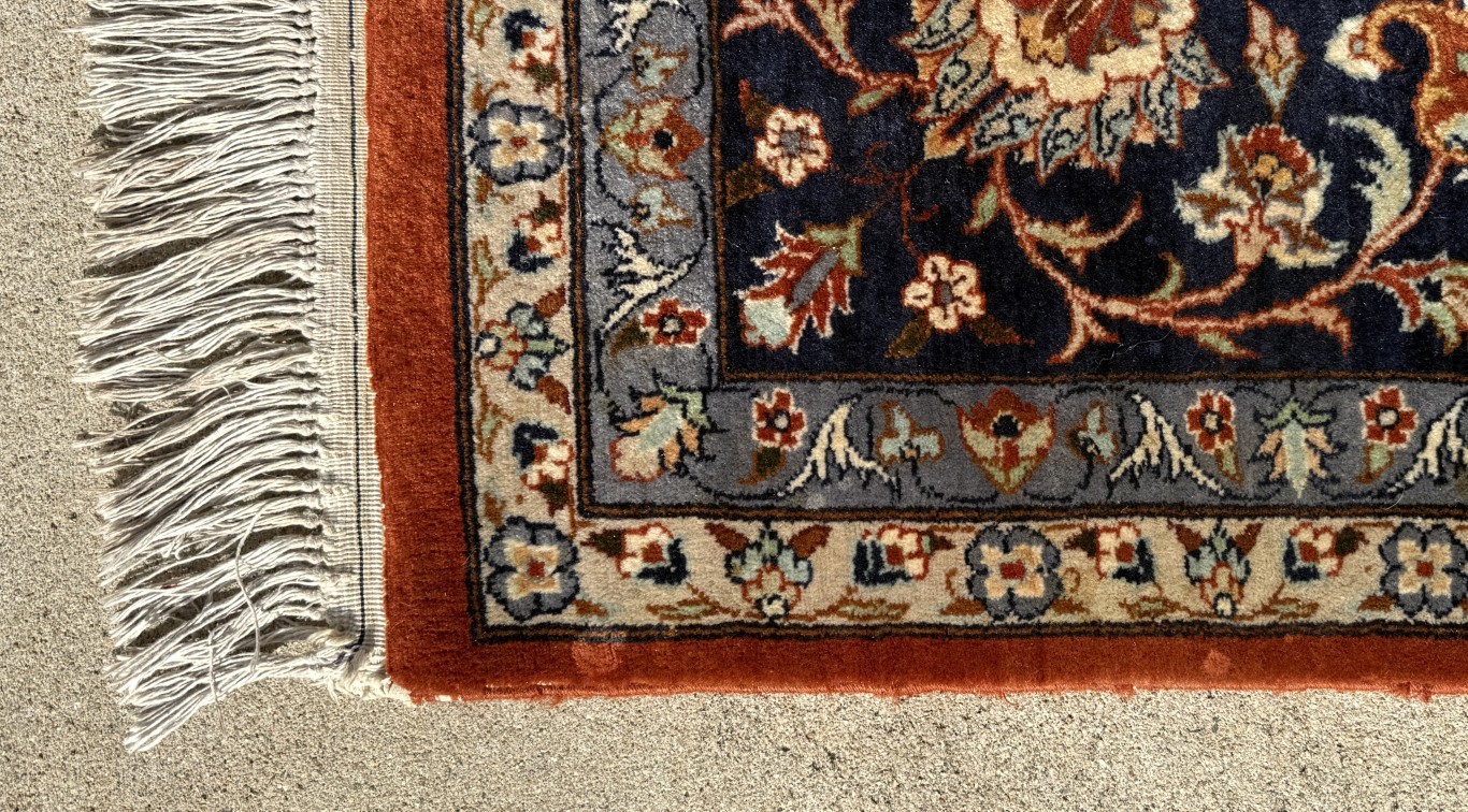 Your happiness with this item is of the utmost importance to us so please review the photographs carefully for condition. We endeavor to try and list any issues we may observe; we may not necessarily note all minor nicks and dings or we may simply miss something. Please inspect carefully to ensure your full happiness with this item. For this particular piece we found wear consistent with age and prior use, including some staining to the cream center medallion and a couple lighter round spots on the edge.