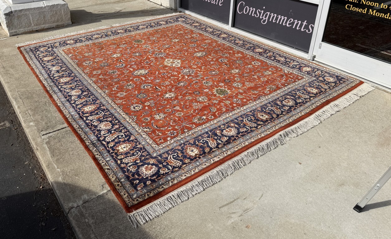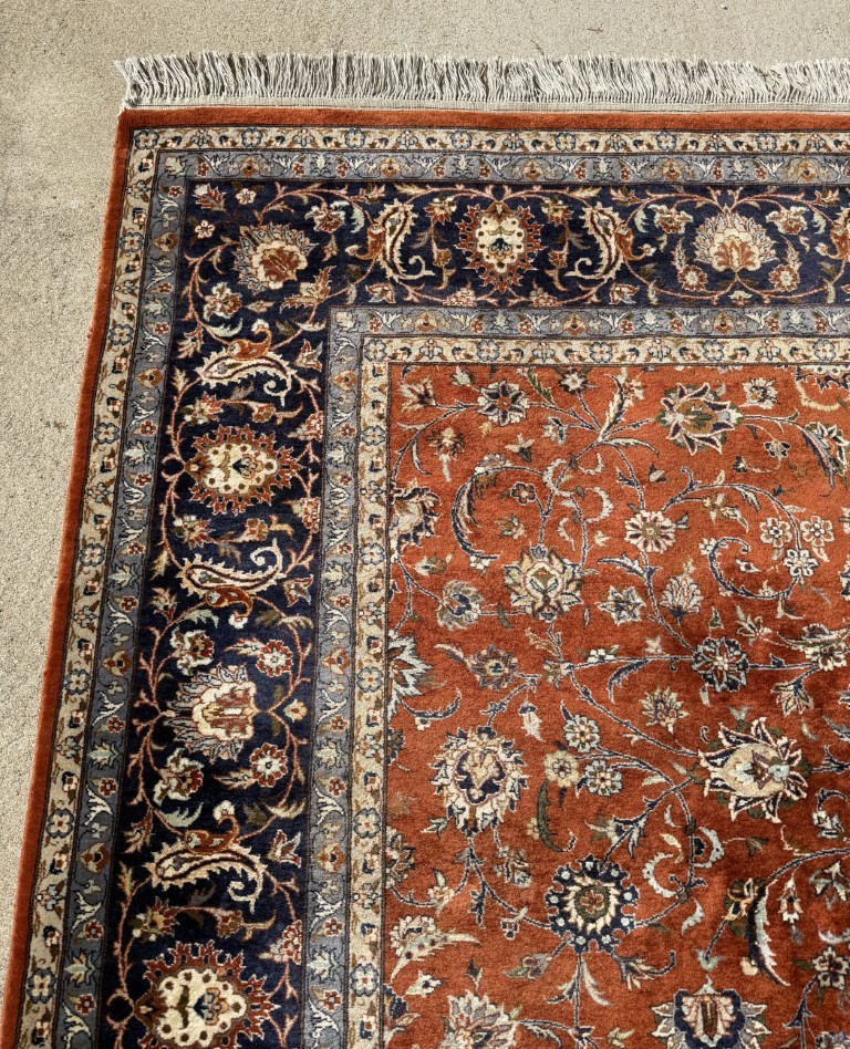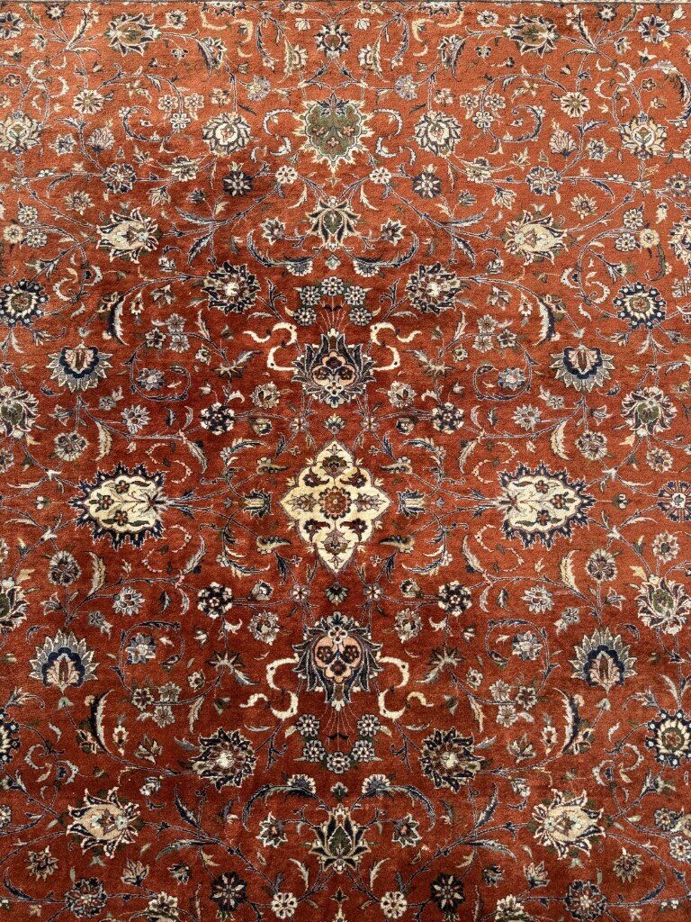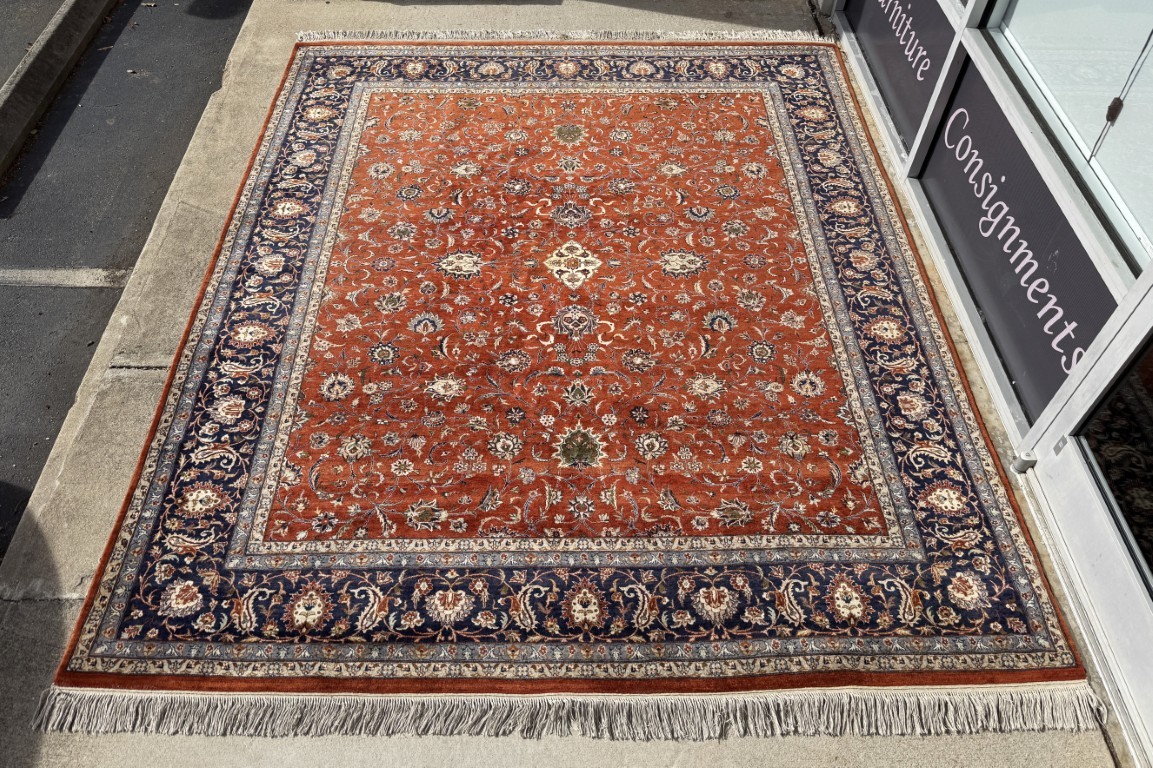 8×10 Hand-Knotted Orange Persian Kashan-Style Rug