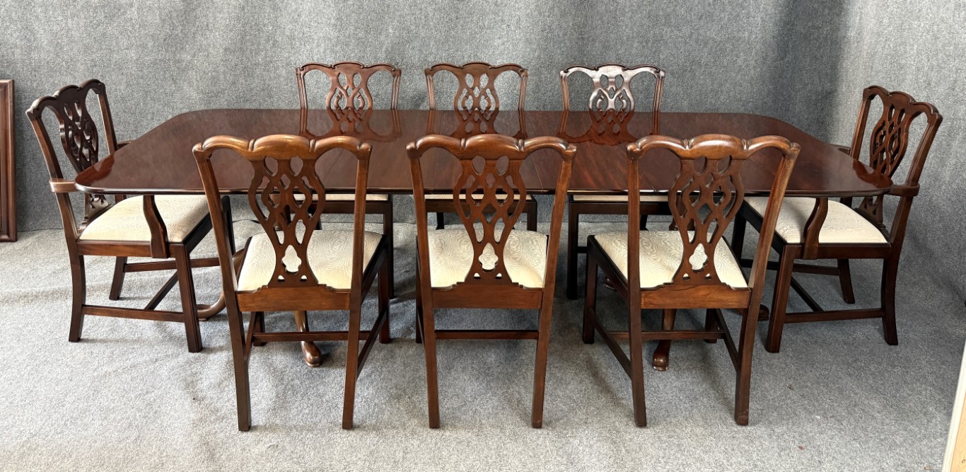 9 Piece Solid Mahogany Dining Set with 3 Leaves