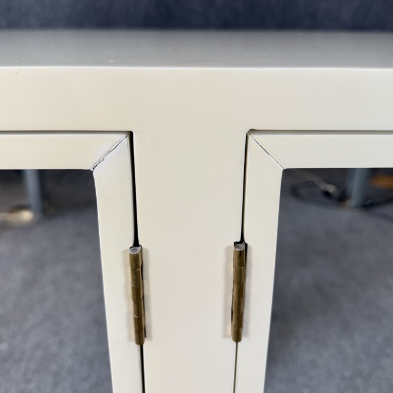 Your happiness with this item is of the utmost importance to us so please review the photographs carefully for condition. We endeavor to try and list any issues we may observe; we may not necessarily note all minor nicks and dings or we may simply miss something. Please inspect carefully to ensure your full happiness with this item. For this particular piece we found wear consistent with age and prior use, including a small crack in the lacquer to front top center, minor crackling at seams of doors, and very minor yellowing.