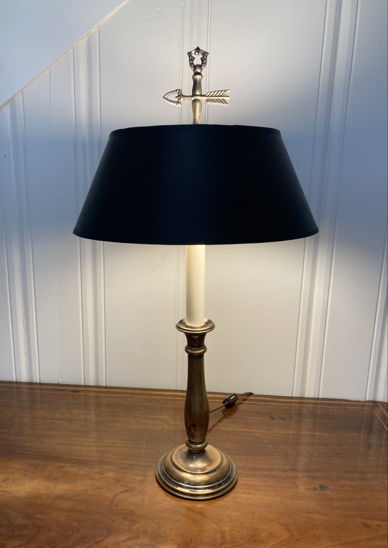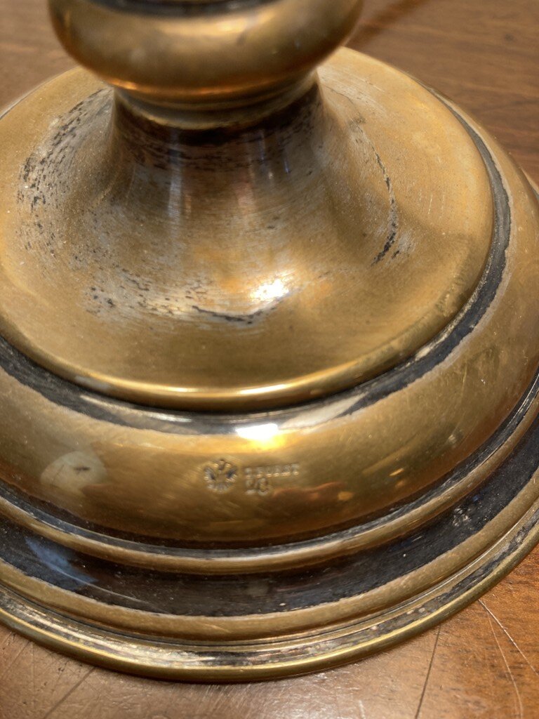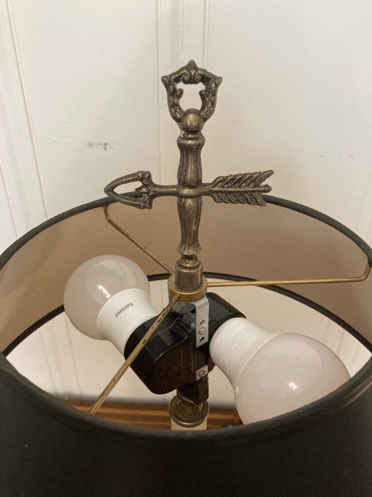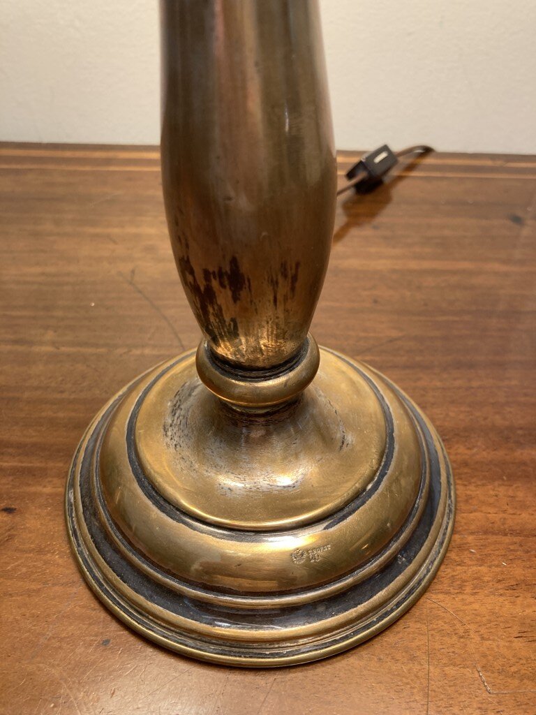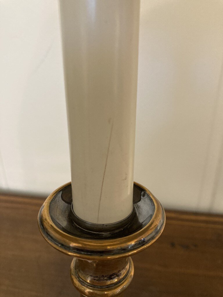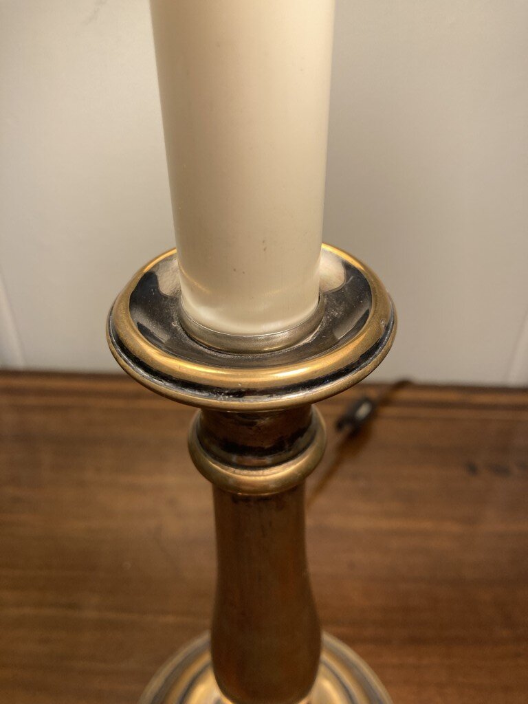 Your happiness with this item is of the utmost importance to us so please review the photographs carefully for condition. We endeavor to try and list any issues we may observe; we may not necessarily note all minor nicks and dings or we may simply miss something. Please inspect carefully to ensure your full happiness with this item. For this lamp we found wear consistent with age and prior use, such as minor denting and finish loss, as well as discoloration and a small crack to the candle sleeve as pictured.
