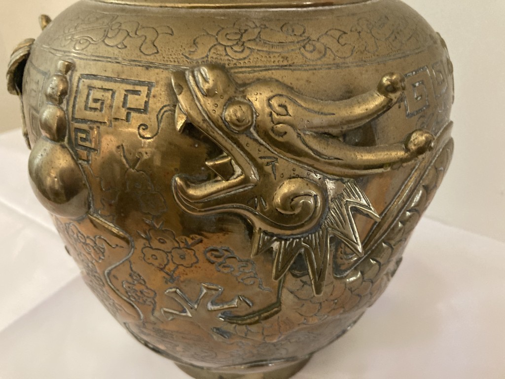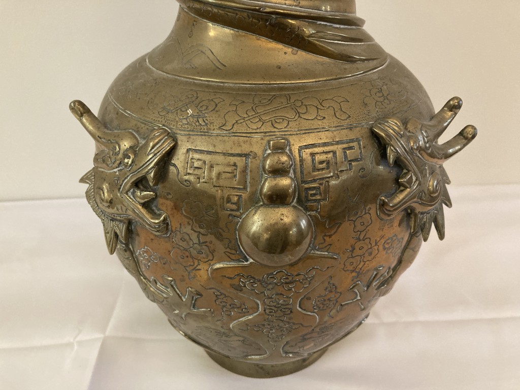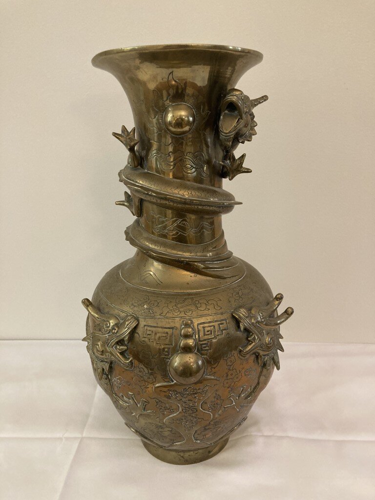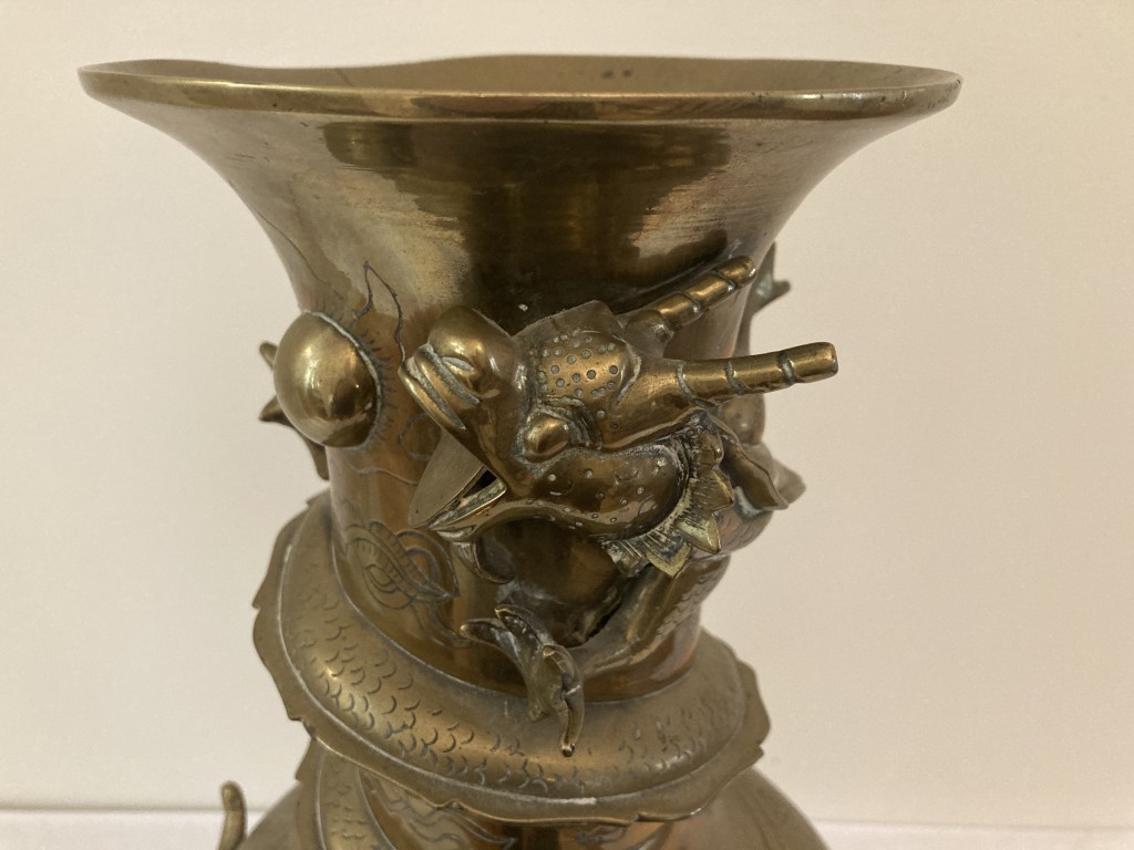 Antique Chinese Bronze Vase with Dragon Motif