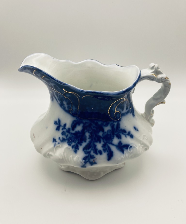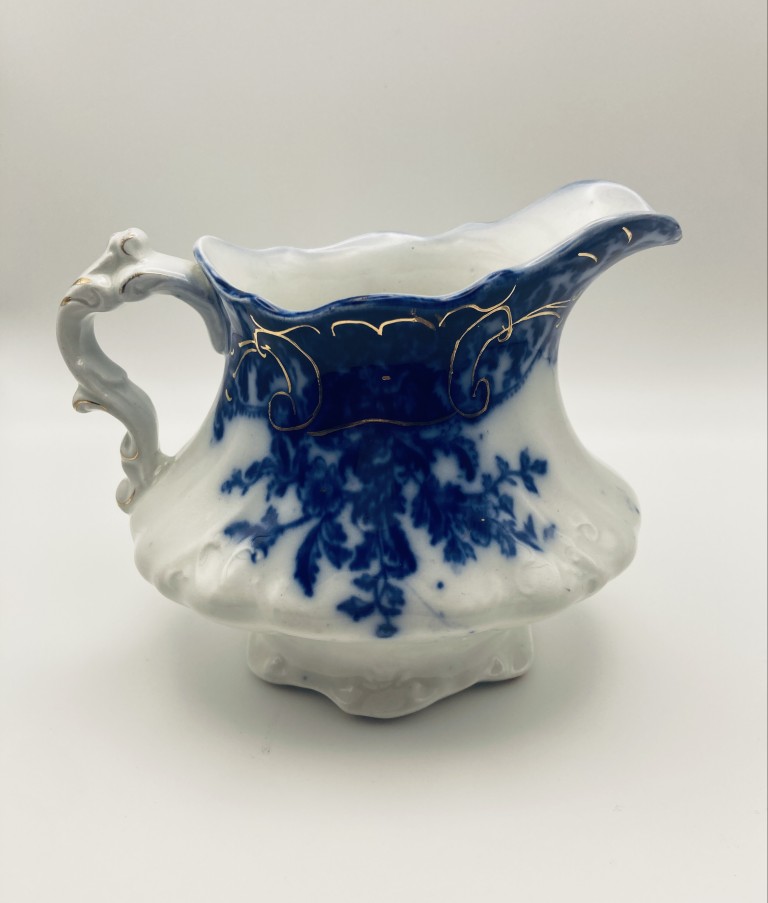 Antique English Flow Blue Cream Pitcher ‘Manhattan’ Pattern Henry Alcock and Co.