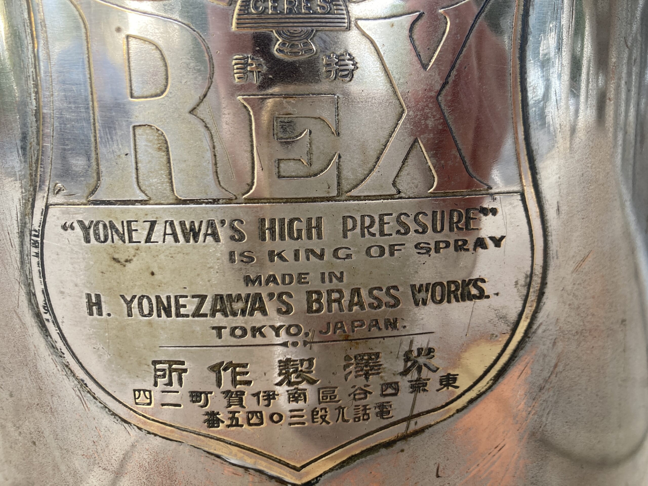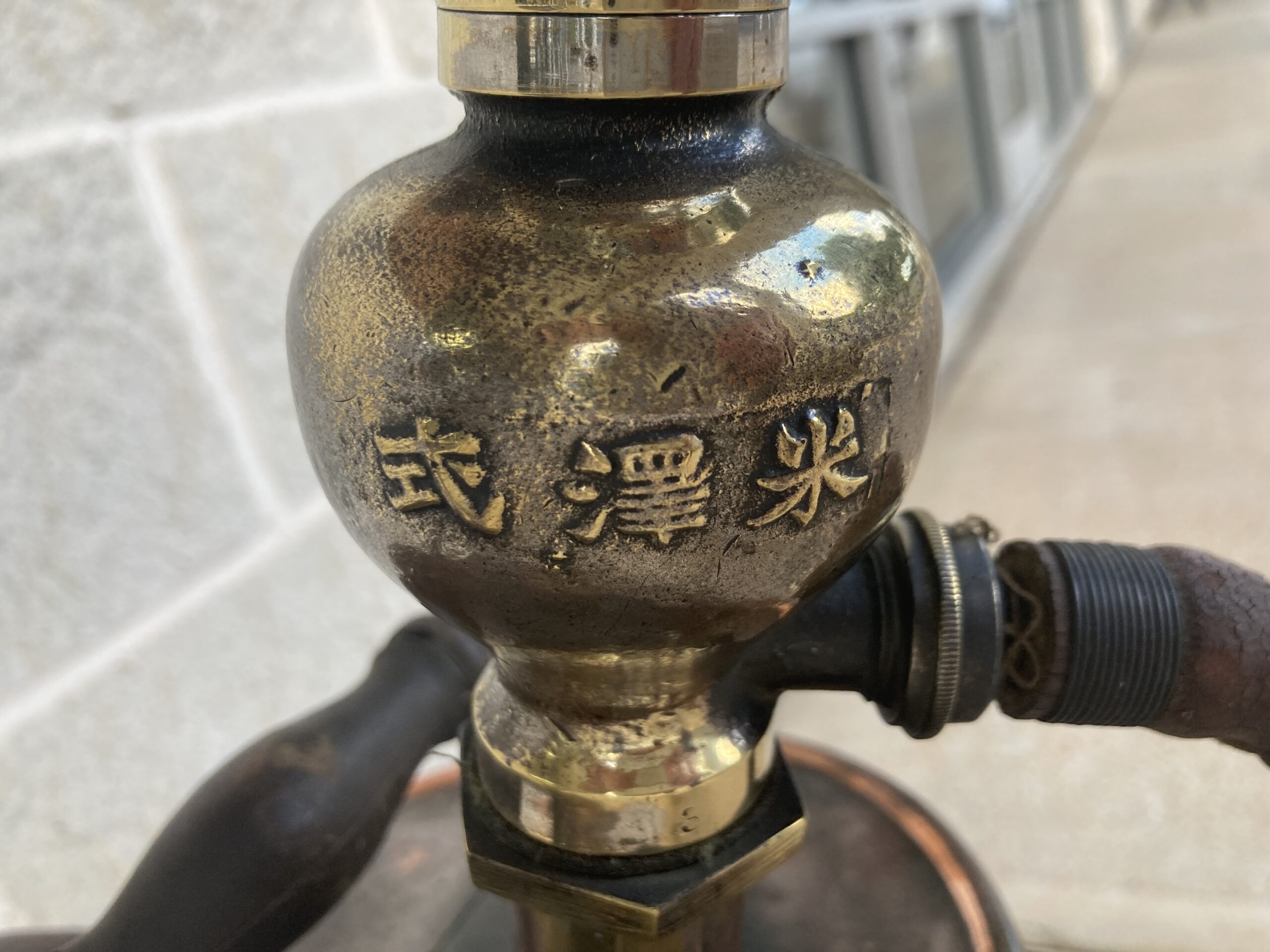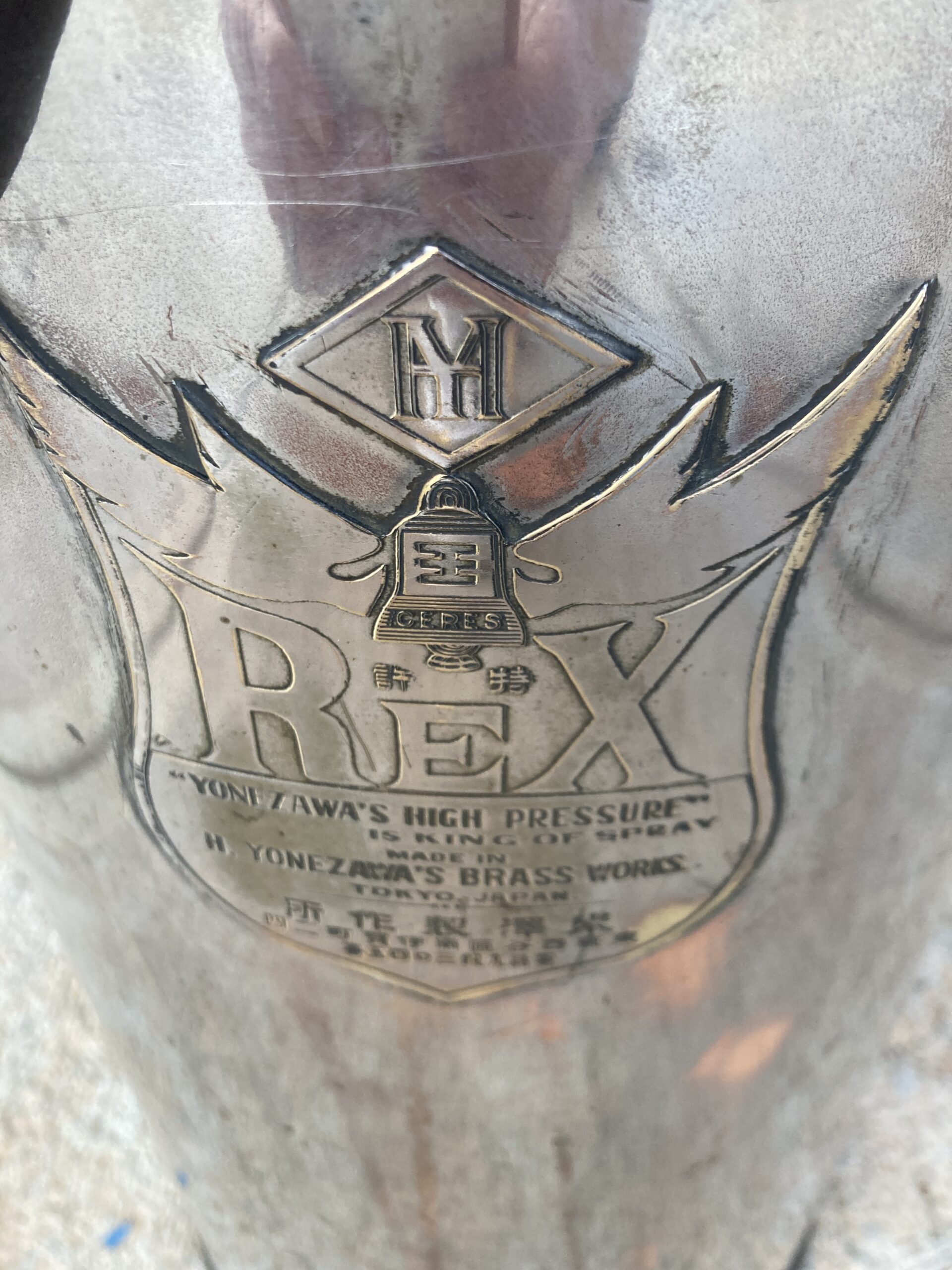 Antique Polished Copper and Brass ‘Rex’ Pump Fire Extinguisher Japanese Made