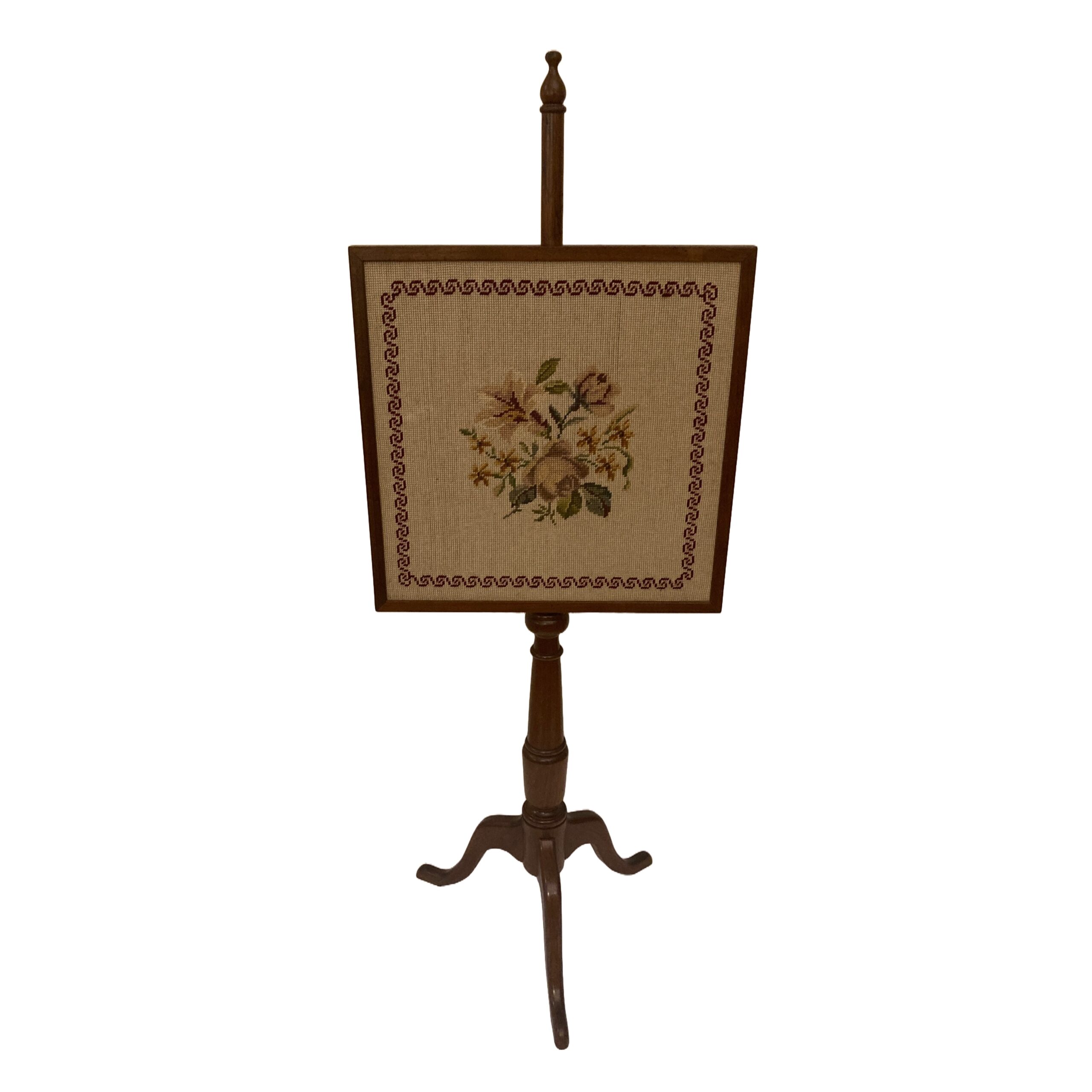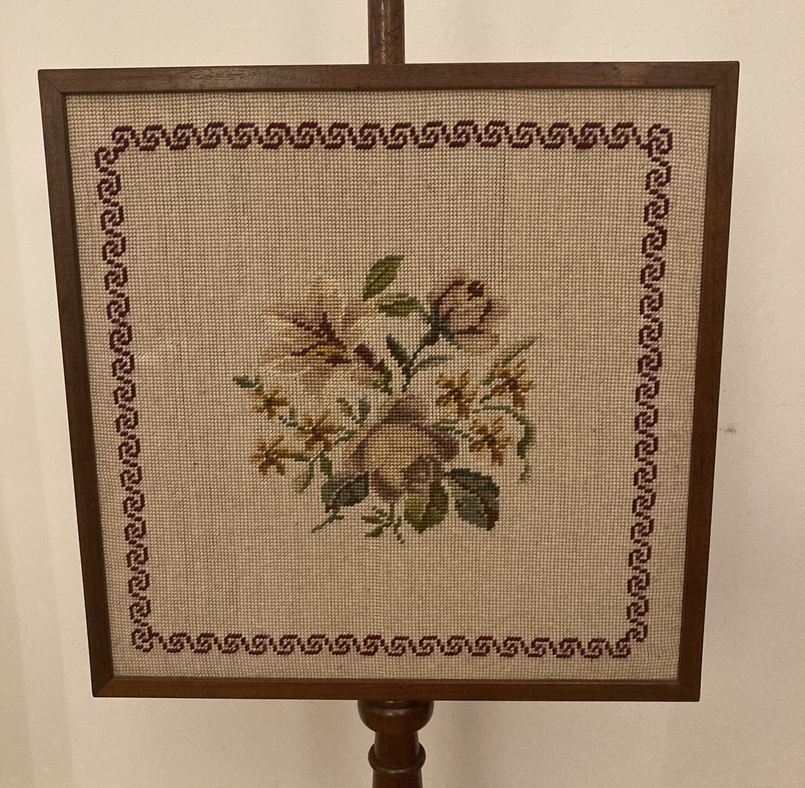 Antique Walnut and Needlepoint Adjustable Fire Screen
