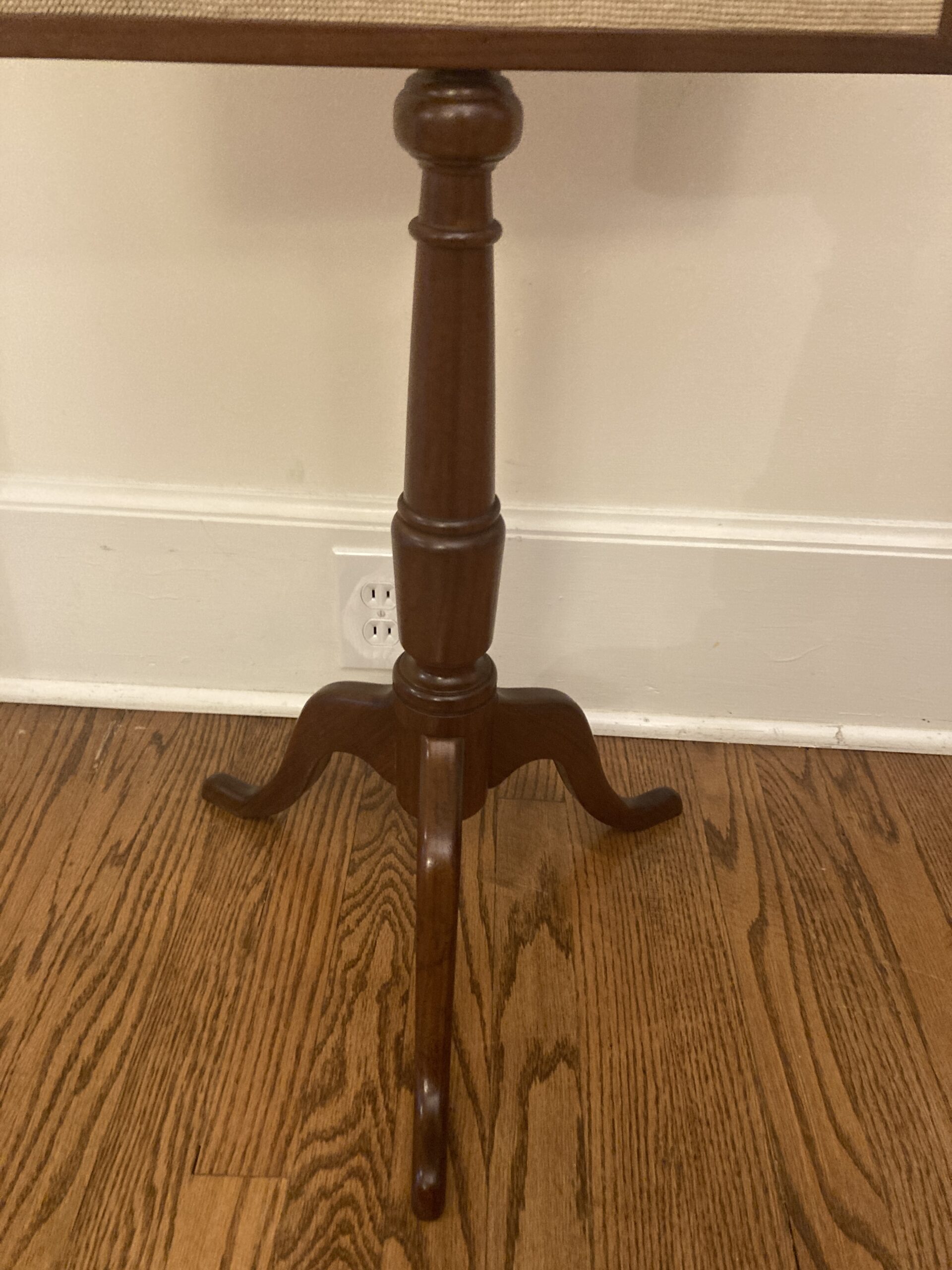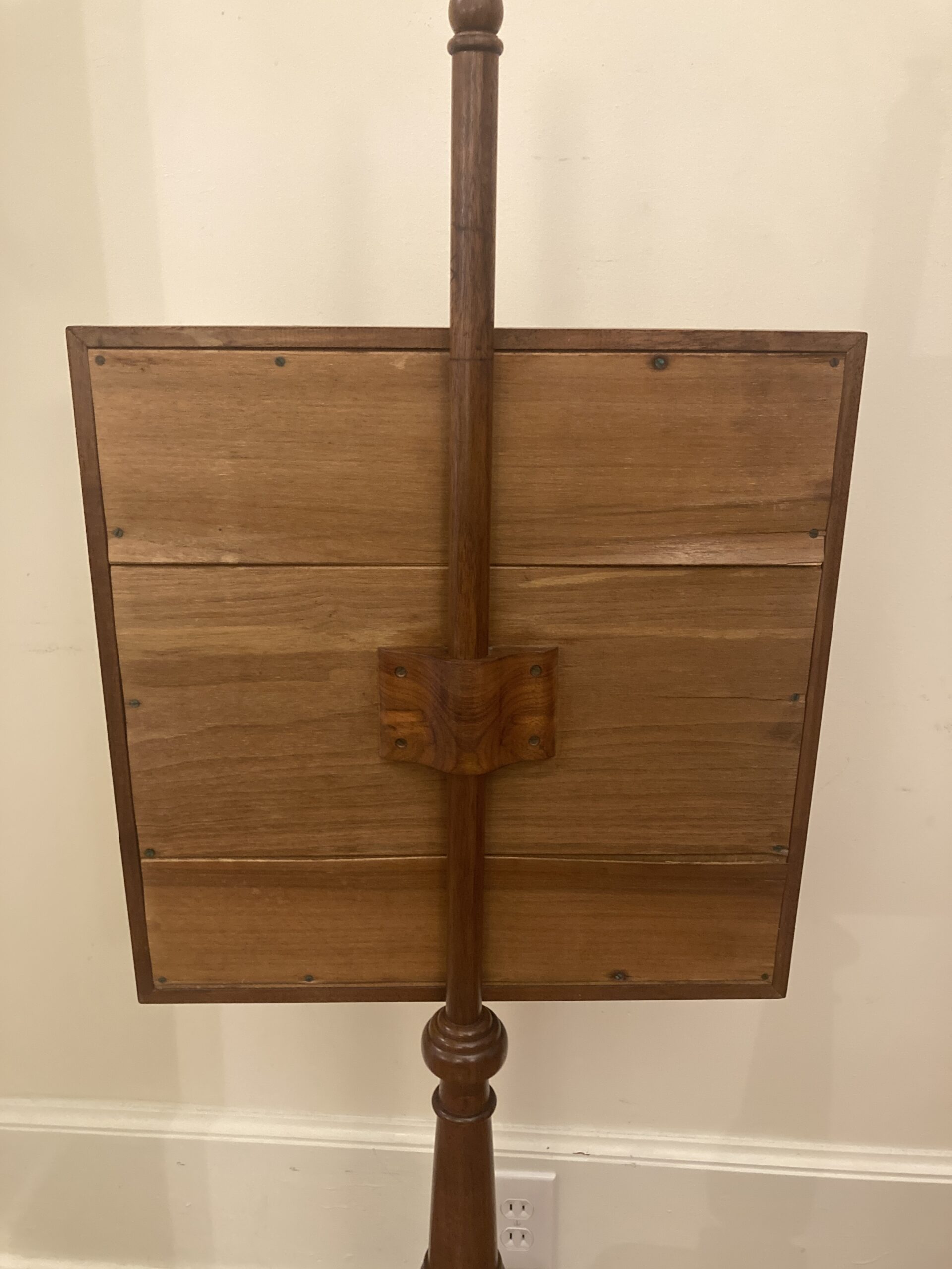 Antique Walnut and Needlepoint Adjustable Fire Screen. Historically used to block the heat of a fire from one’s face. Height adjusts.