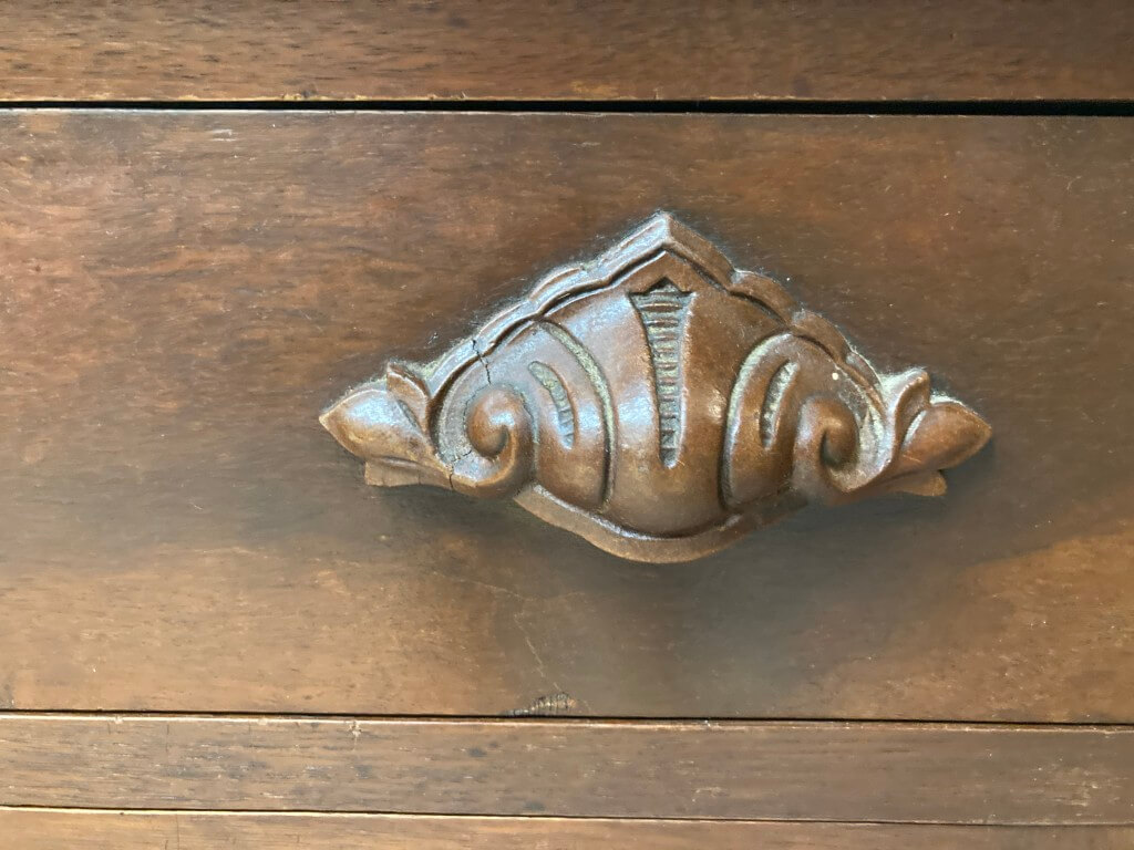 Your happiness with this item is of the utmost importance to us so please review the photographs carefully for condition. We endeavor to try and list any issues we may observe; we may not necessarily note all minor nicks and dings or we may simply miss something. Please inspect carefully to ensure your full happiness with this item. For this particular piece we found wear consistent with age and prior use, including finish issues, cracks, and old shelf paper in the interior.
