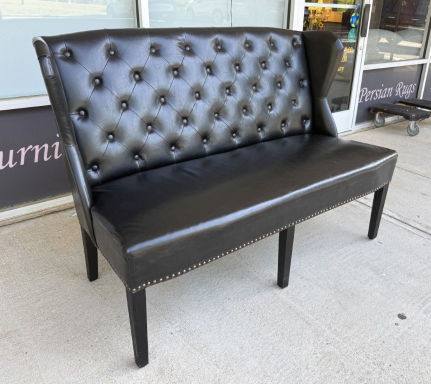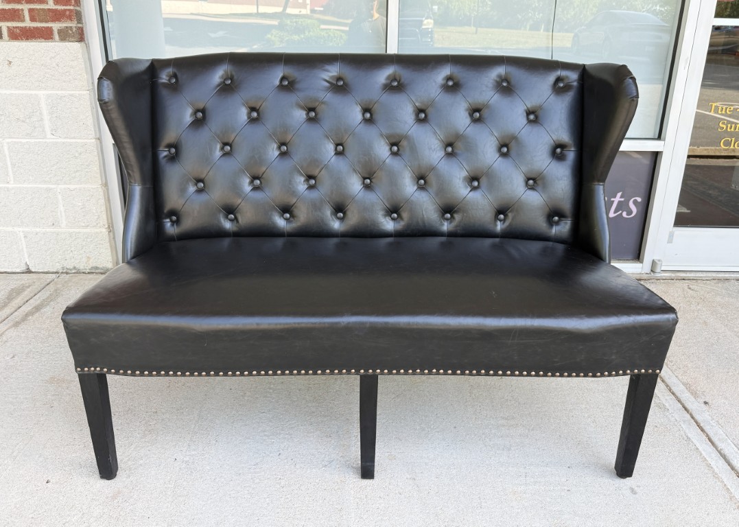 Arhaus Black Tufted Leather Settee