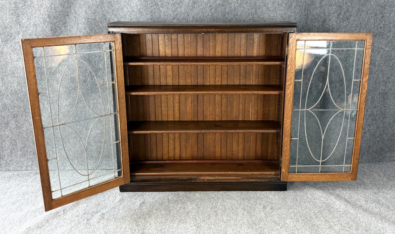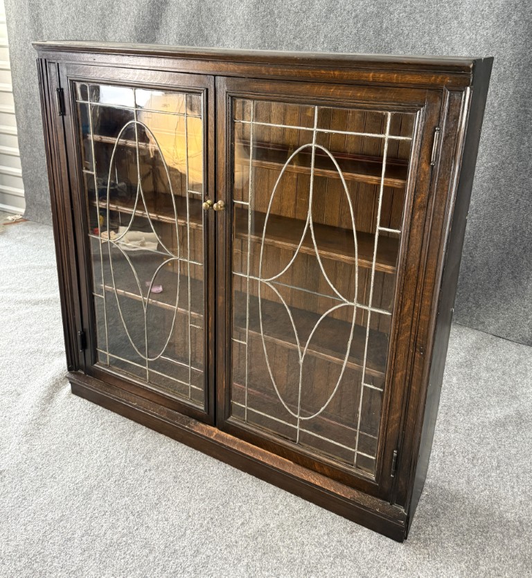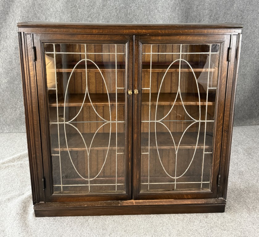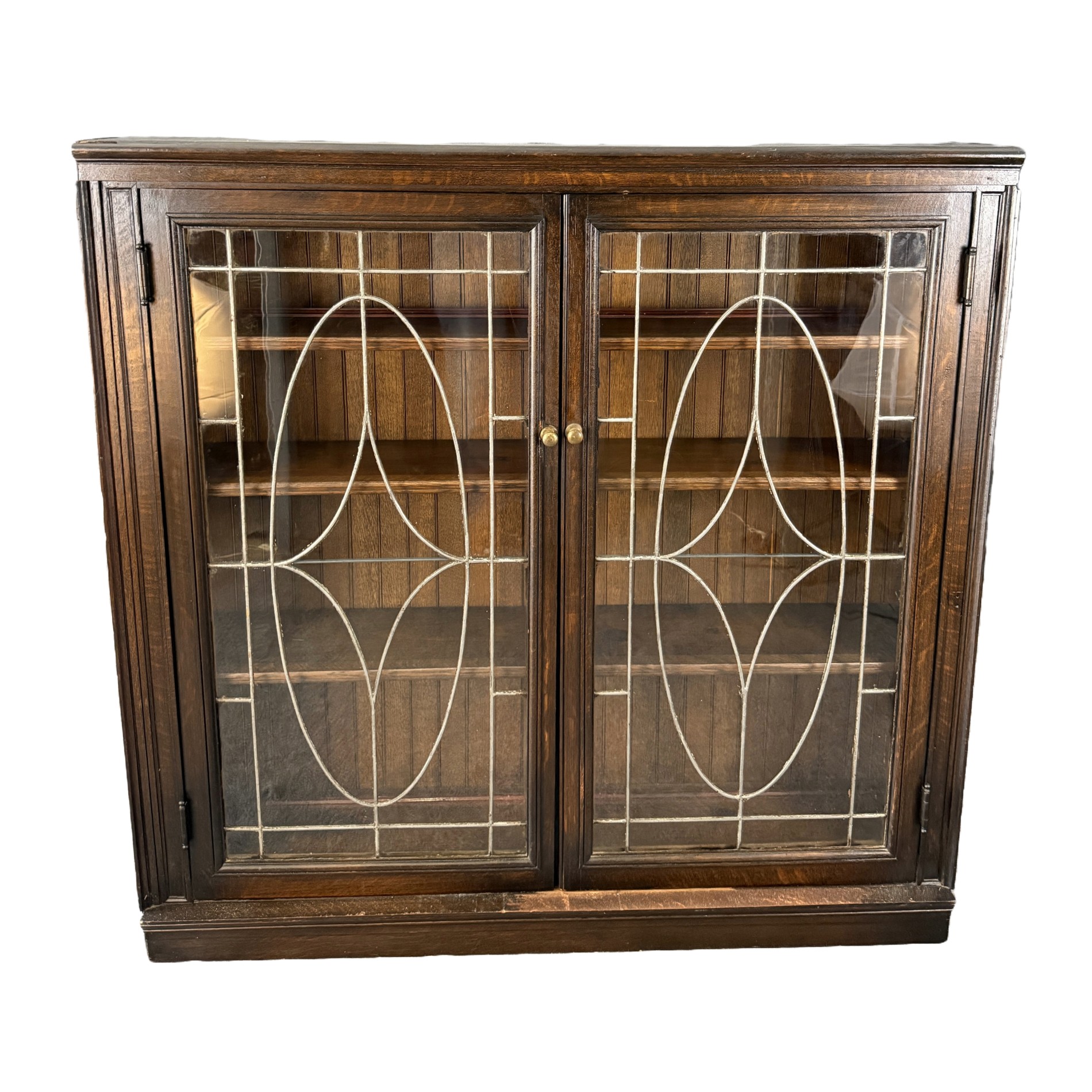 c1900 Two-Door Oak Leaded Glass Bookcase
