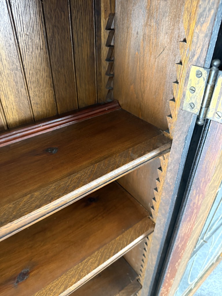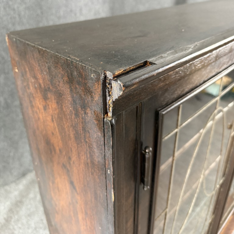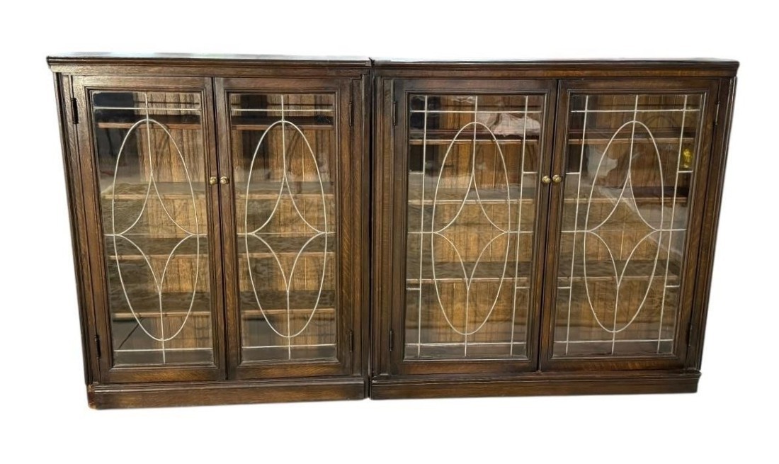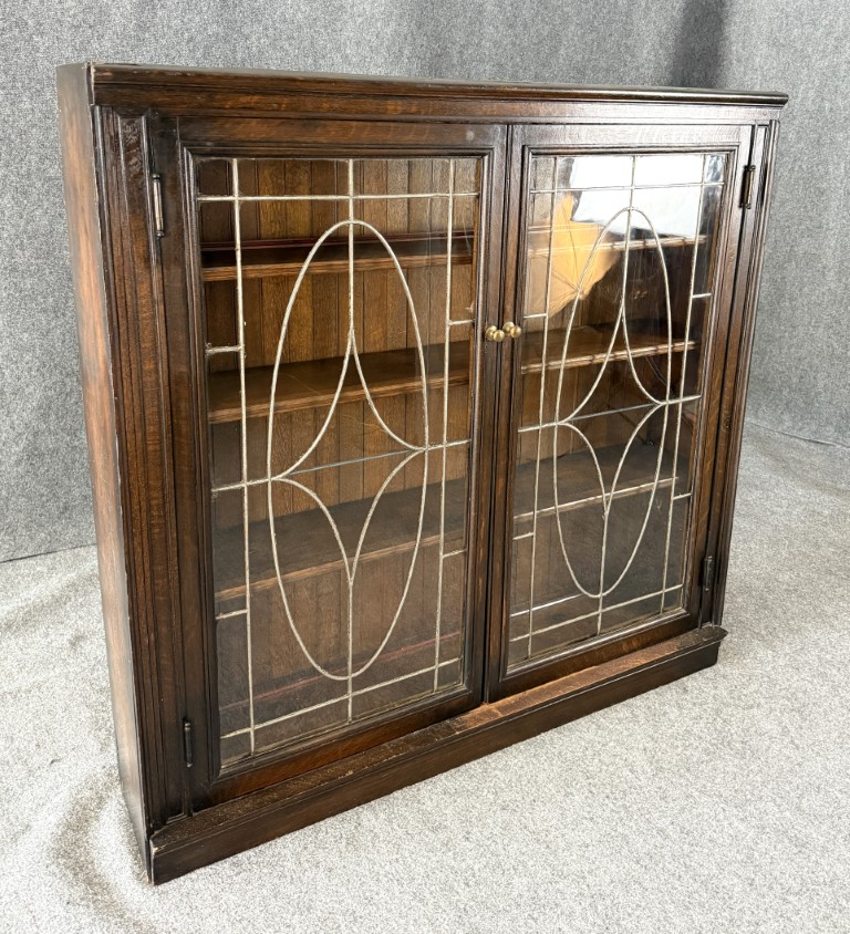 c1900 Two-Door Oak Leaded Glass Bookcase
