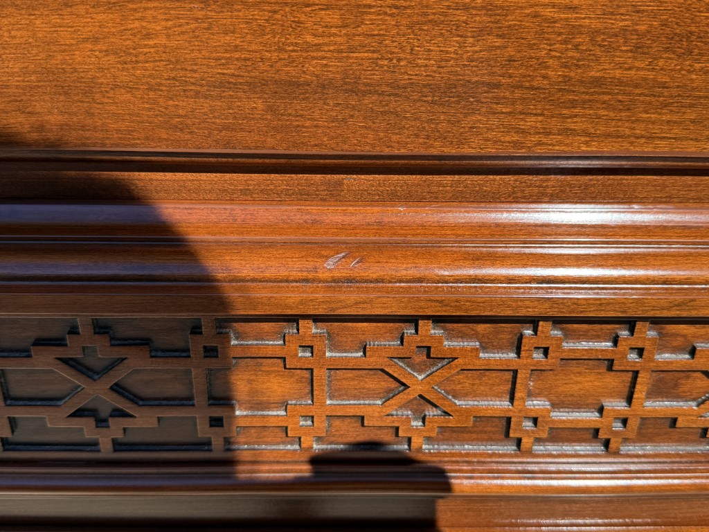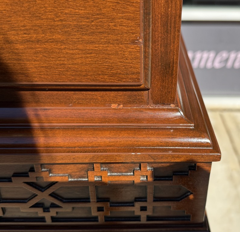 Your happiness with this item is of the utmost importance to us so please review the photographs carefully for condition. We endeavor to try and list any issues we may observe; we may not necessarily note all minor nicks and dings or we may simply miss something. Please inspect carefully to ensure your full happiness with this item. For this particular piece we found minor wear consistent with age and prior use, including minor scuffs on the top of the base molding and a scuff on the side of the front left leg.