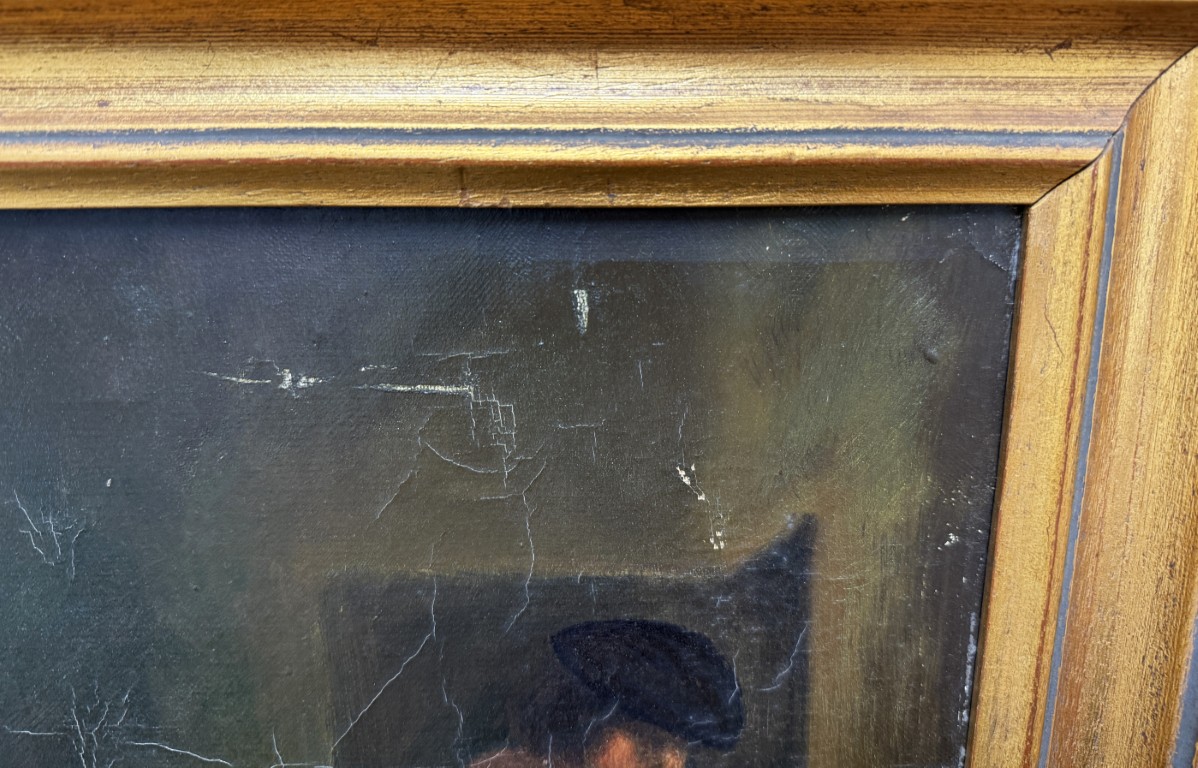 Your happiness with this item is of the utmost importance to us so please review the photographs carefully for condition. We endeavor to try and list any issues we may observe; we may not necessarily note all minor nicks and dings or we may simply miss something. Please inspect carefully to ensure your full happiness with this item. For this particular piece we found minor wear consistent with age and prior use, including minor craquelure to painting and some paint loss to top right.