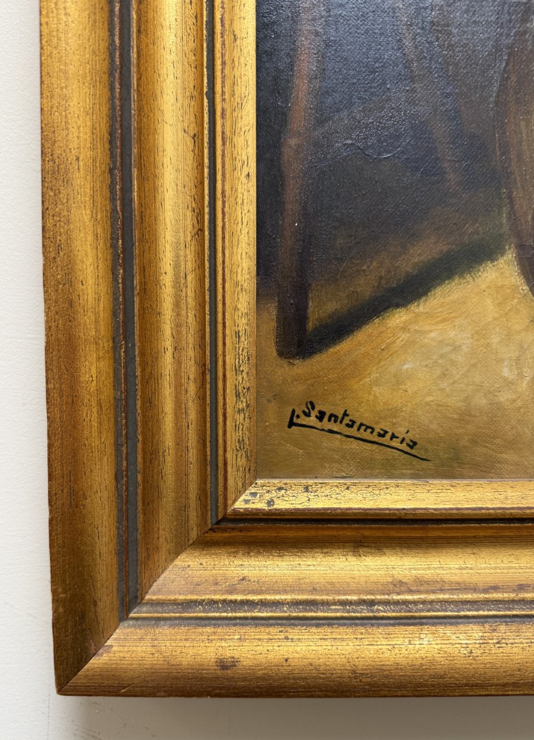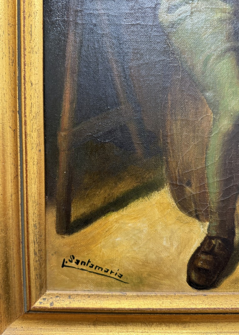 Early 1900’s Oil on Canvas “The Smoker” Signed Santamaria