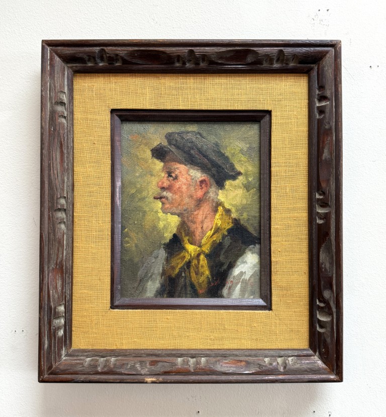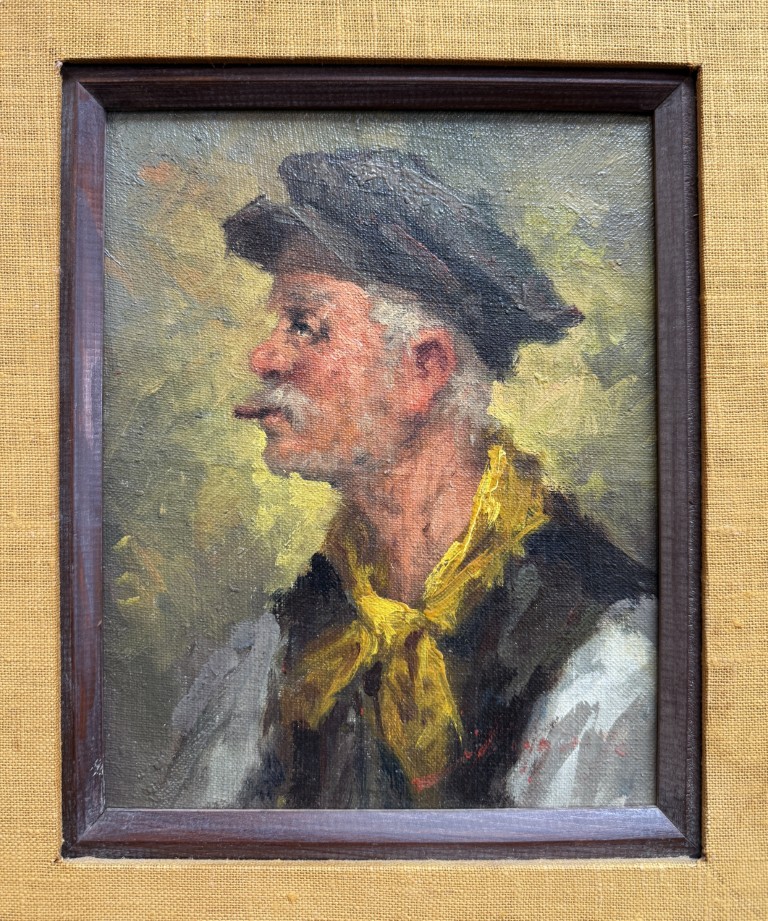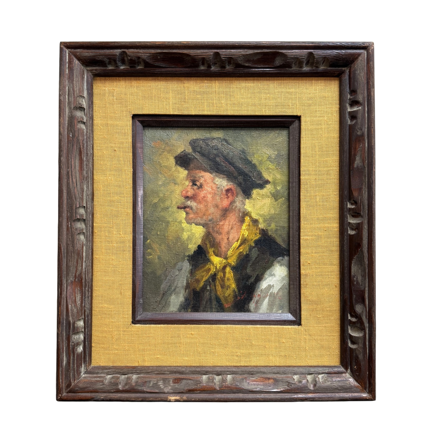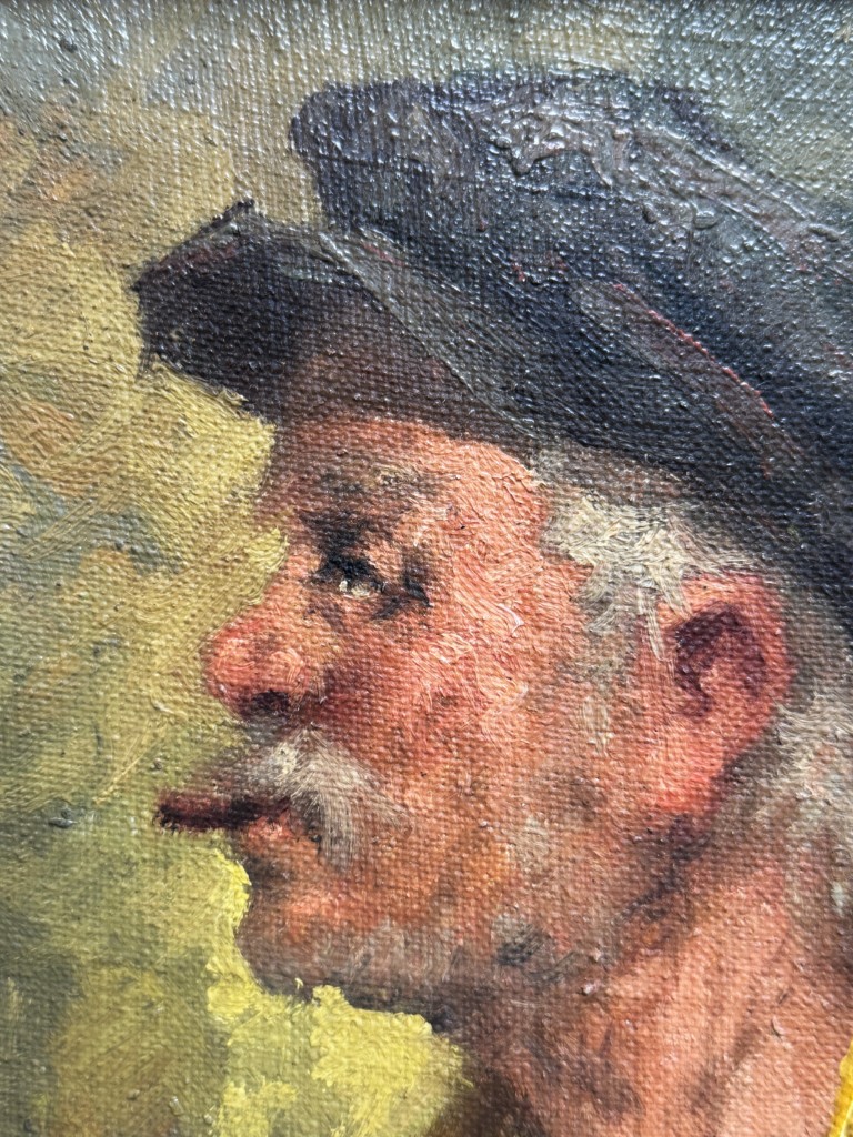 Early 1900’s Signed Original Oil on Canvas of Man Smoking Pipe