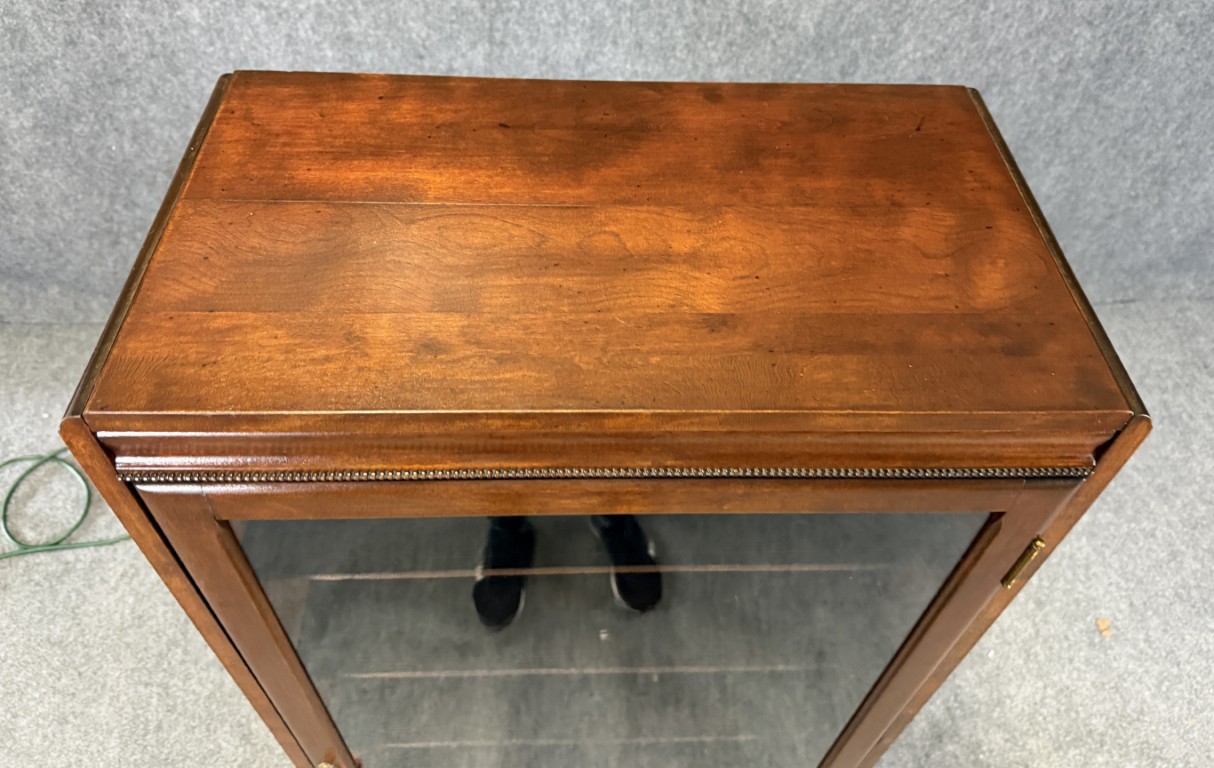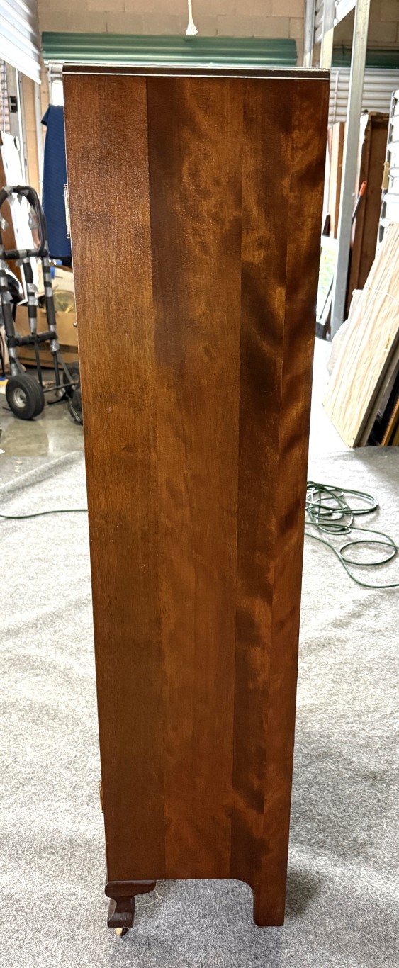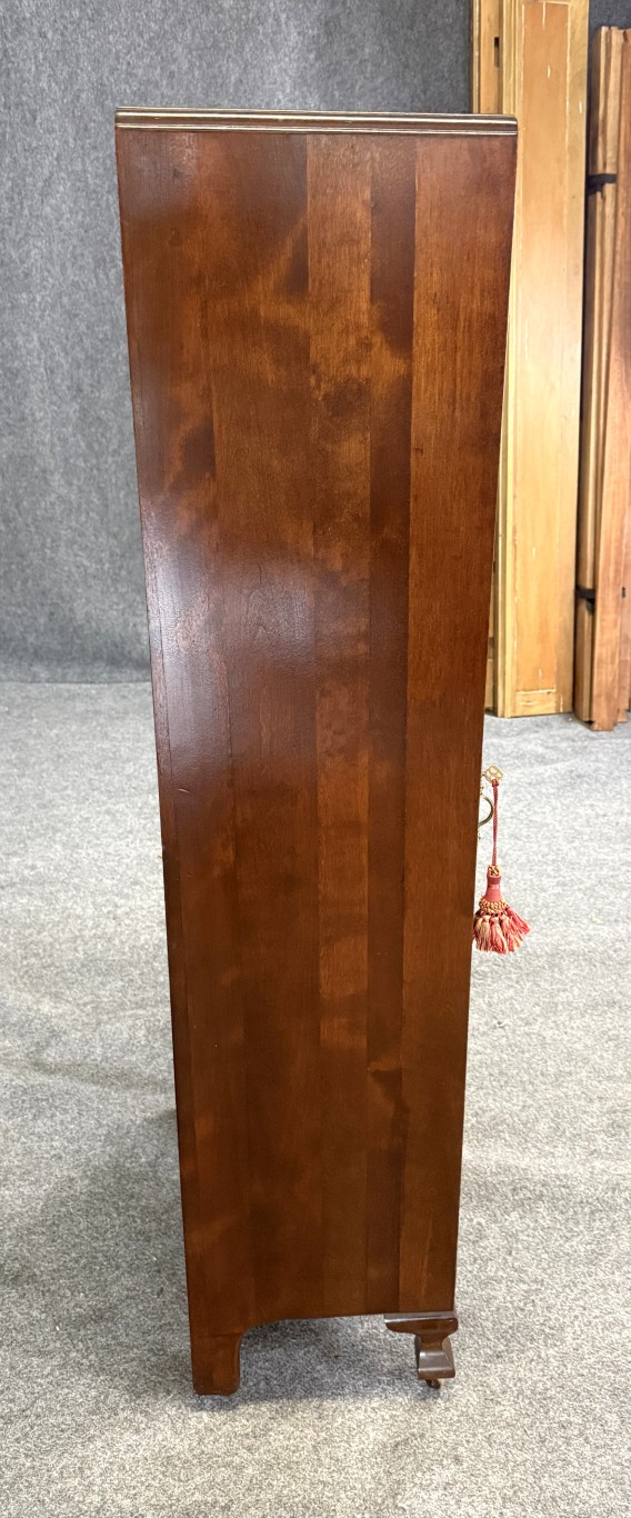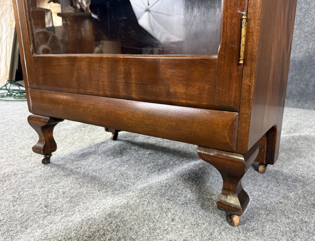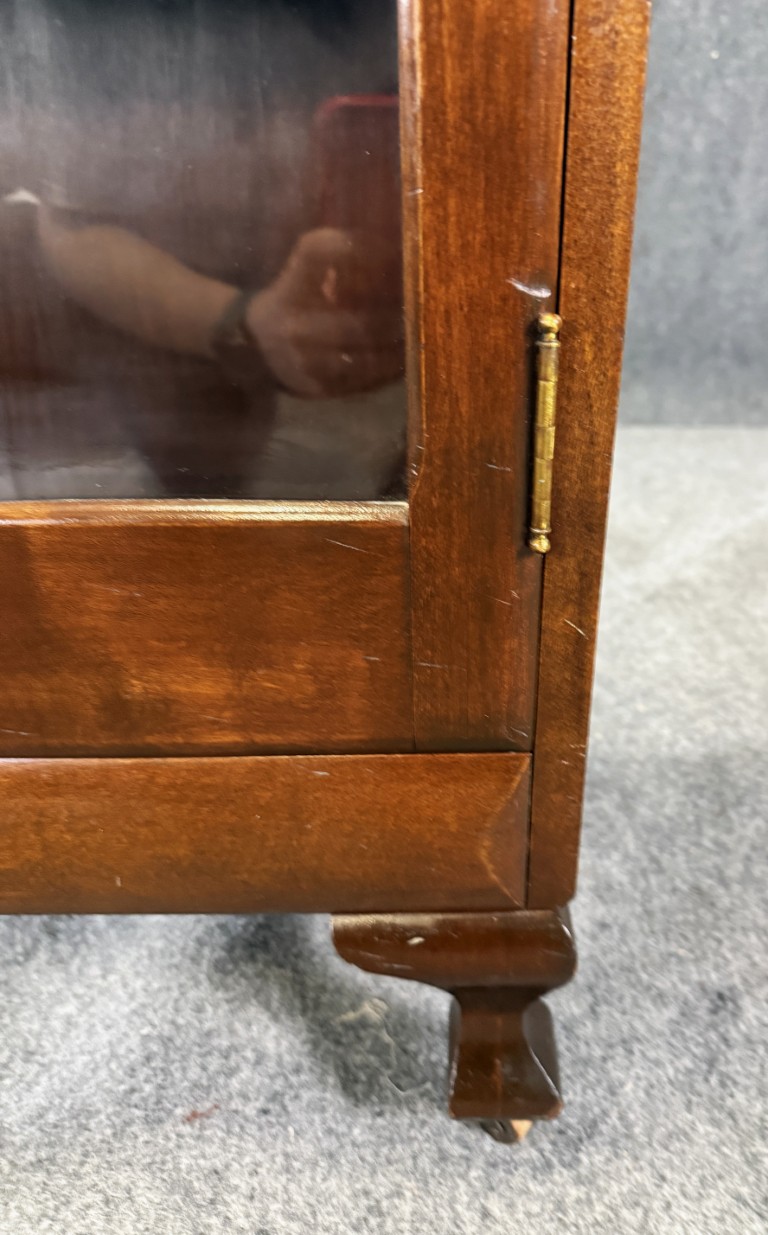 This early 1900s bookcase is crafted from solid mahogany and features a tall glass-paneled door that beautifully showcases the warm character of the wood. Inside, multiple spacious shelves provide ample storage for books or collectibles, while the classic proportions and elegant simplicity reflect the refined craftsmanship of the period.