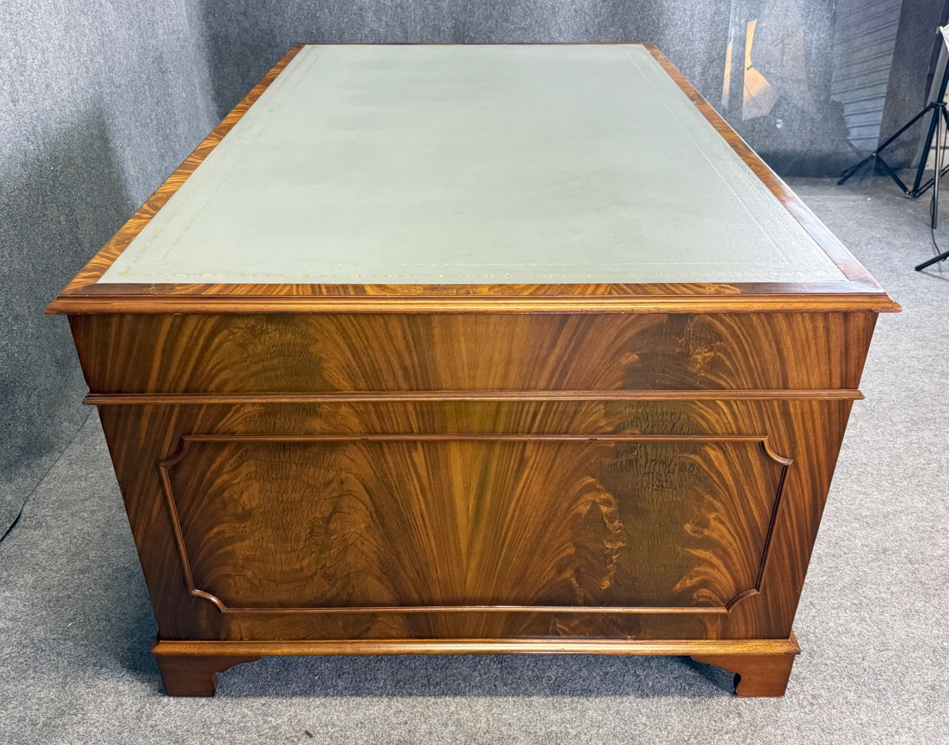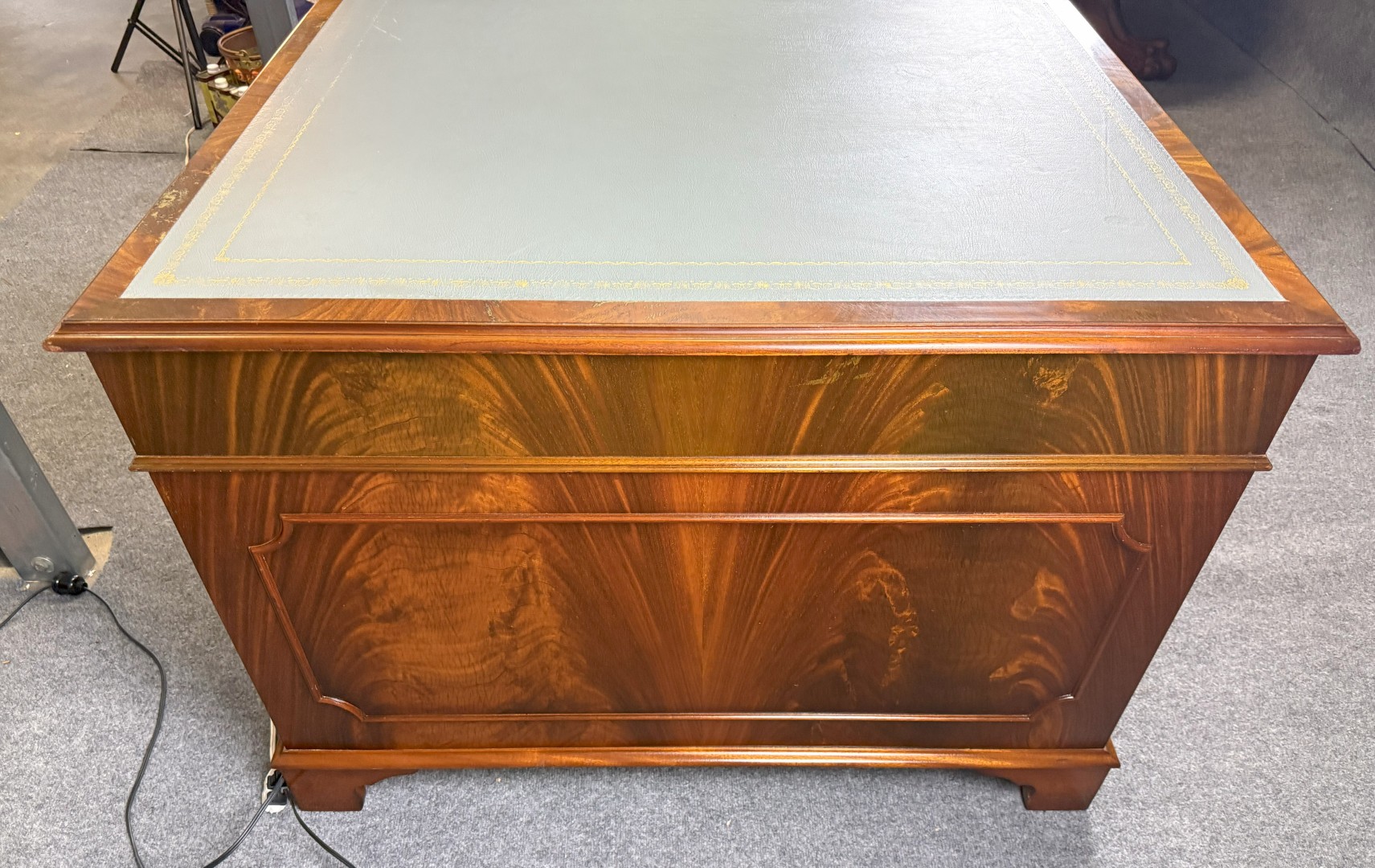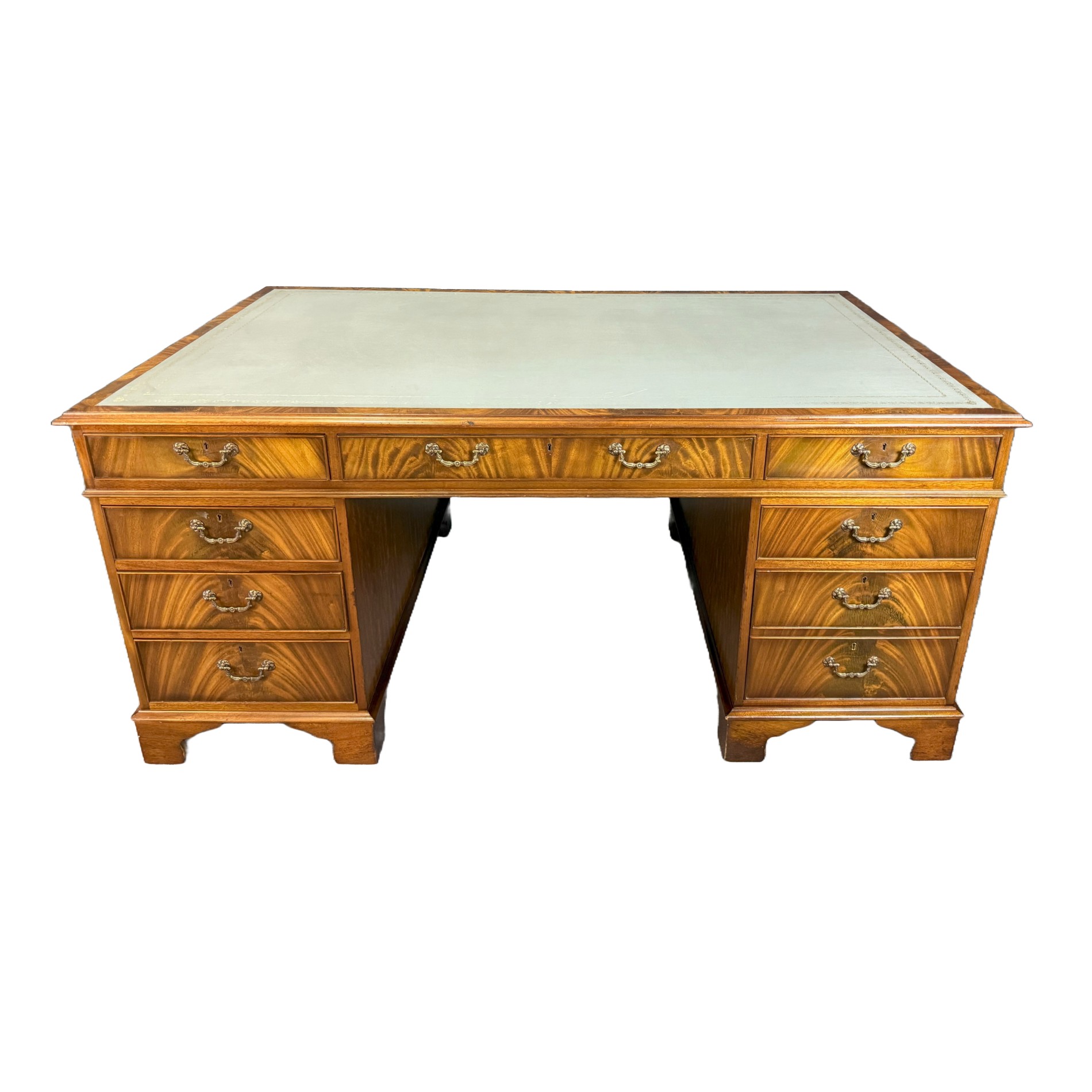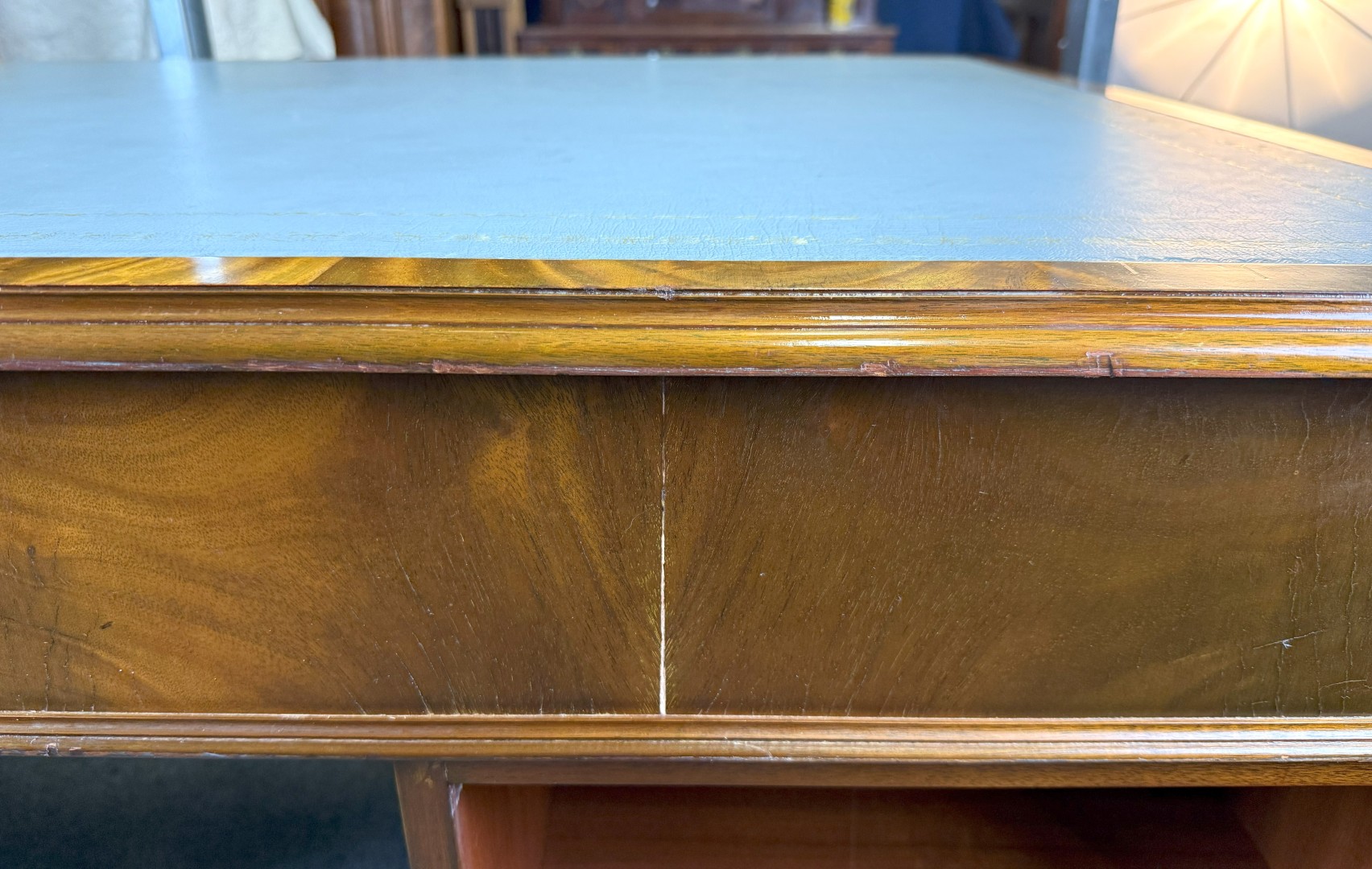 Early 20th Century Flamed Mahogany Blue Leather Top Executive Desk