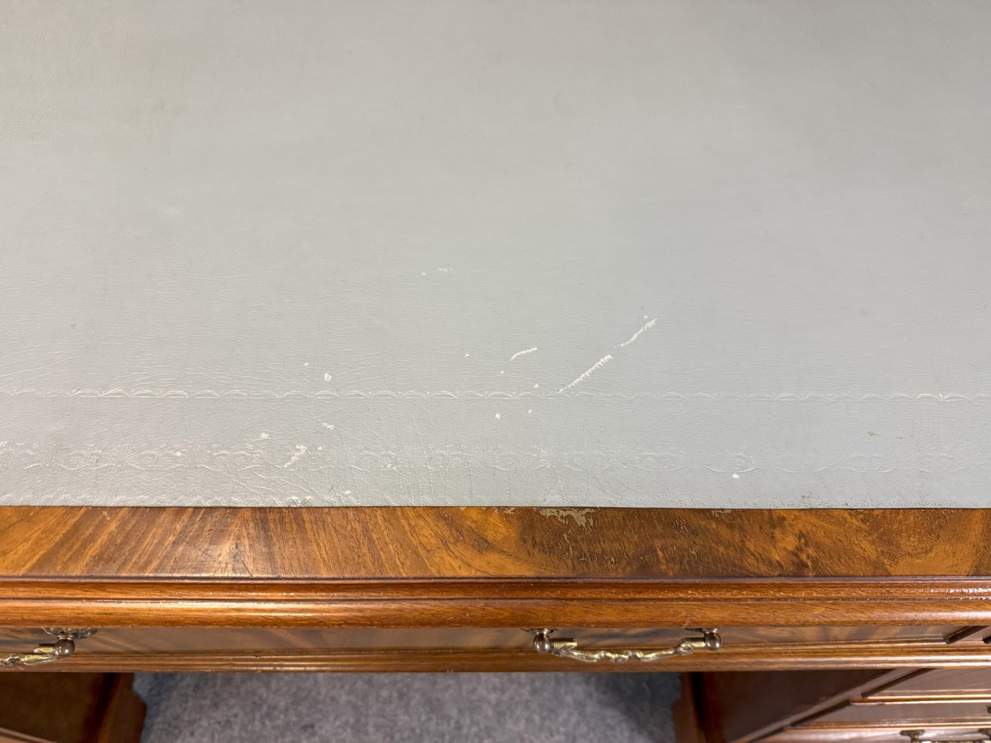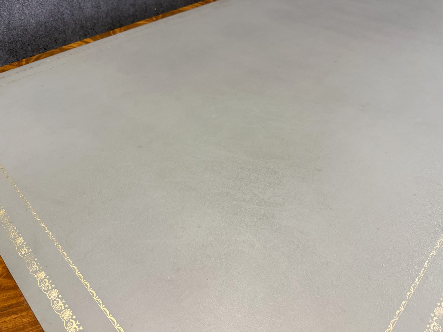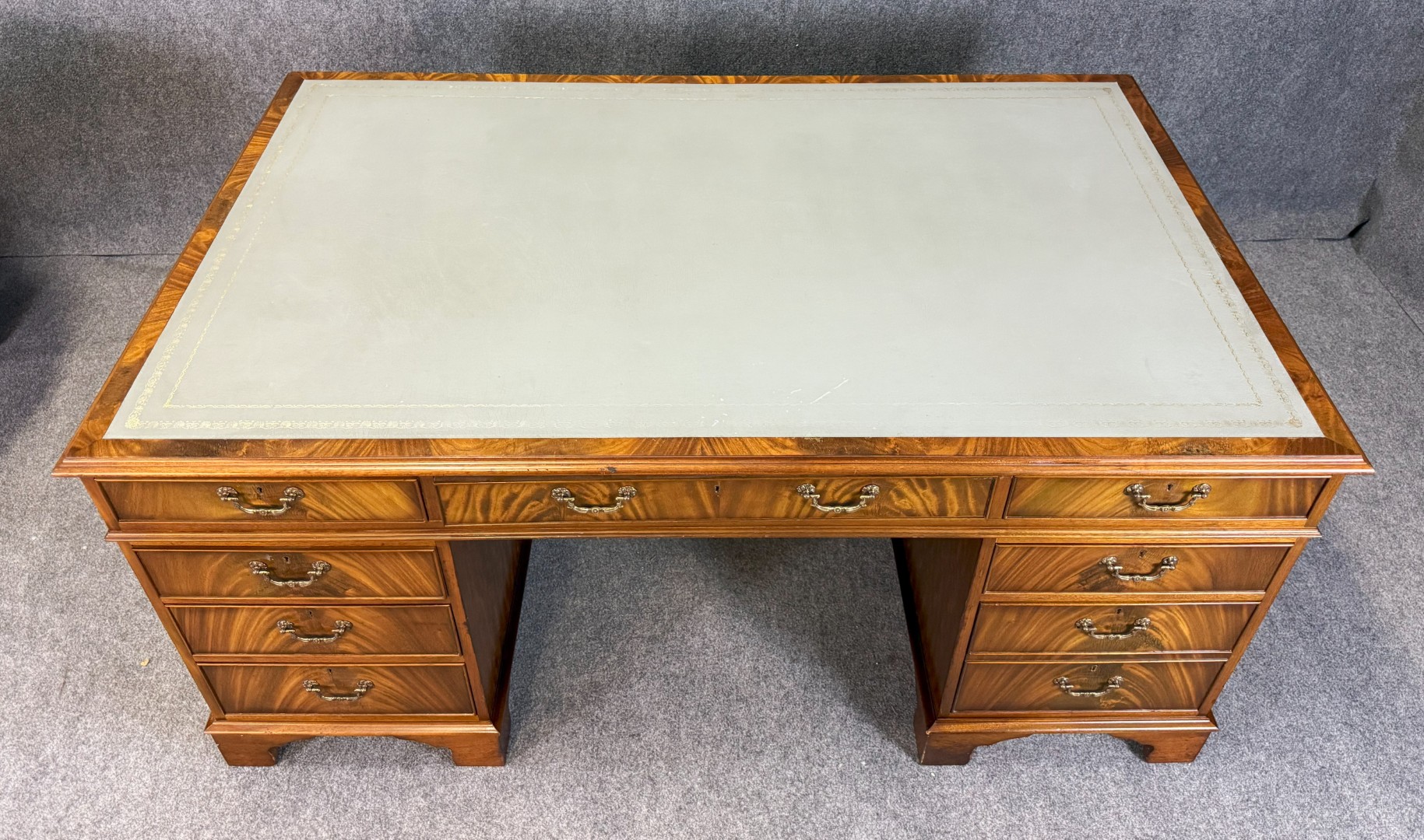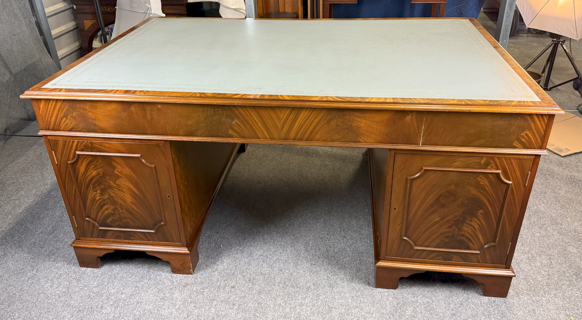 Early 20th Century Flamed Mahogany Blue Leather Top Executive Desk