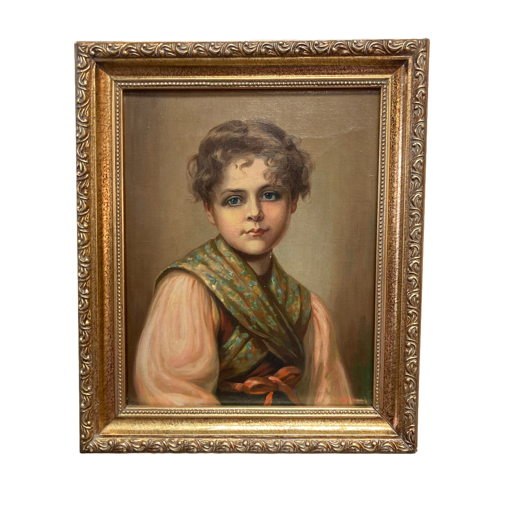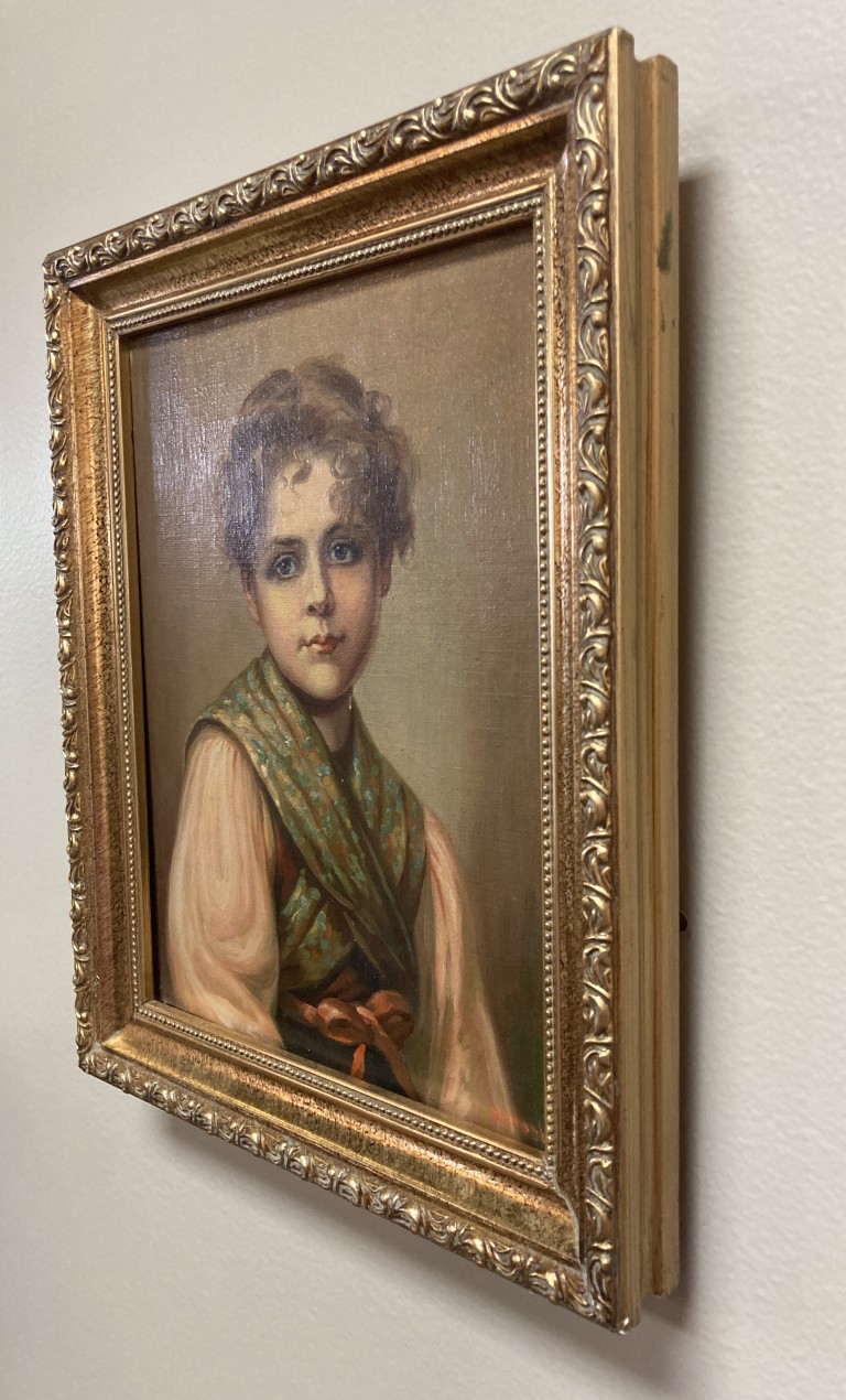 Early 20th Century Signed Original Oil on Canvas Painting of a Young Girl
