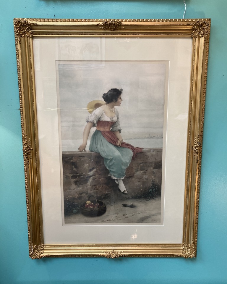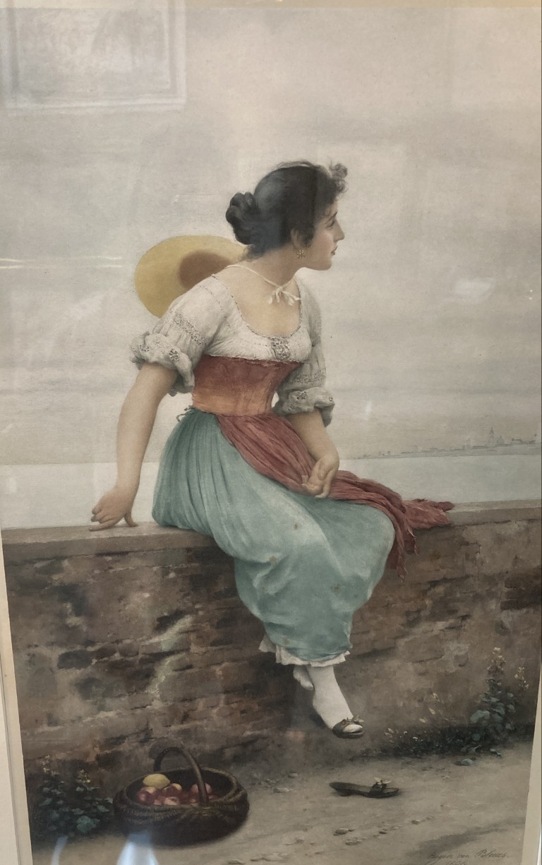 Eugene Von Blaas 1896 Hand Colored Engraving of a Young Lady