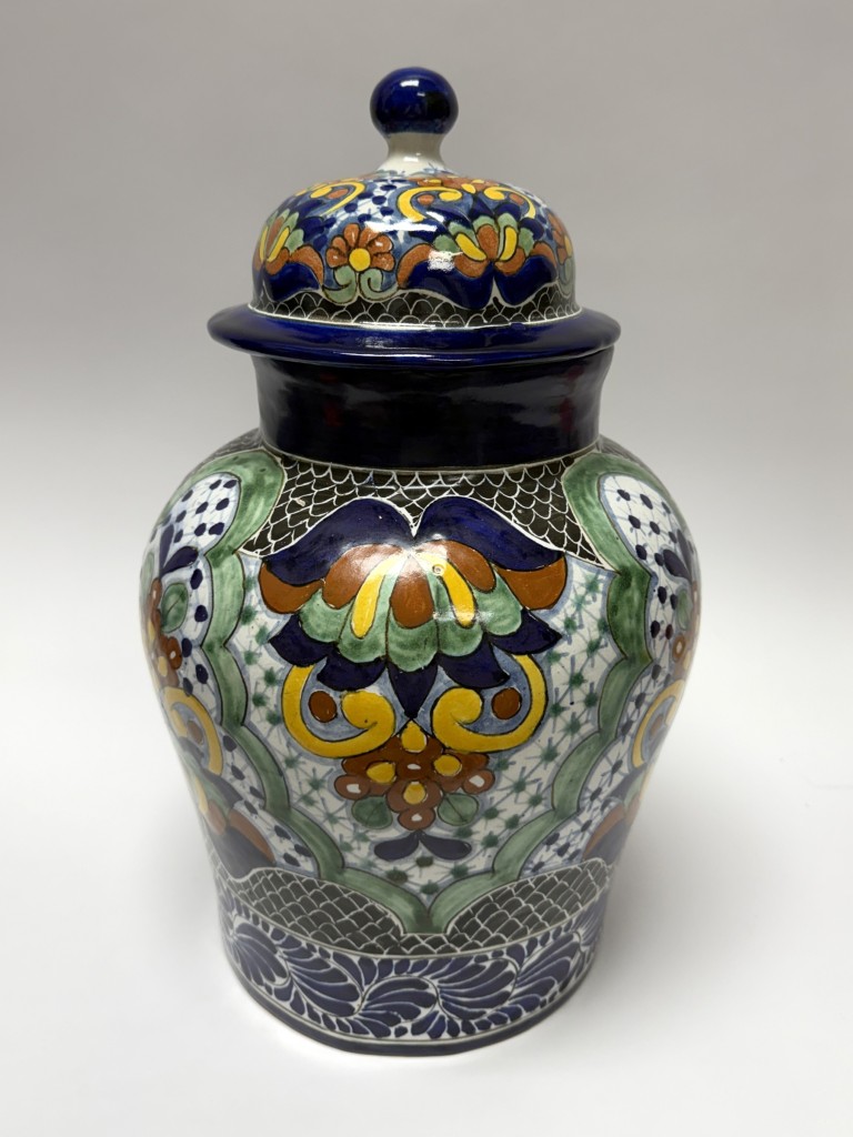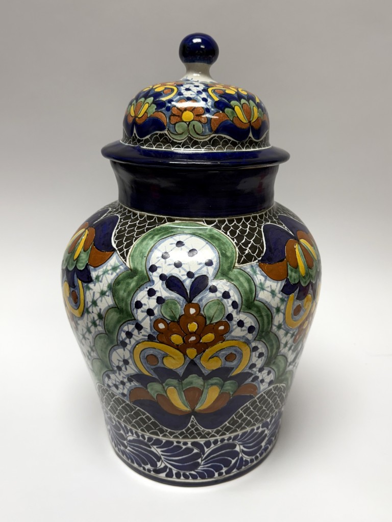 Hand-Painted Blue Mexican Lidded Urn