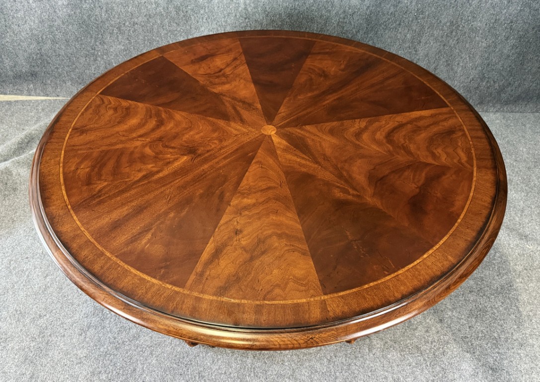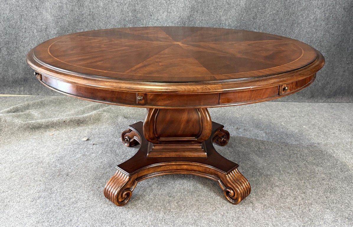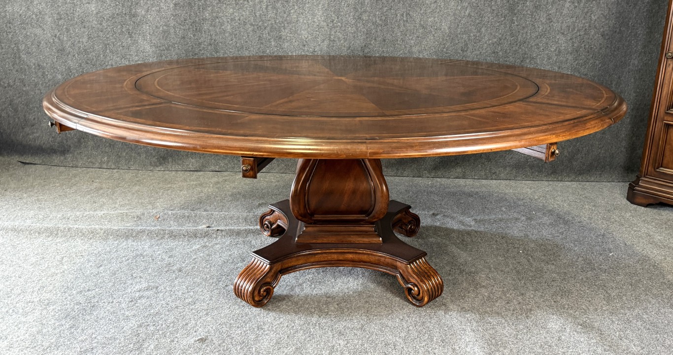 Haverty’s 8 Piece Flamed Mahogany Round Dining Set