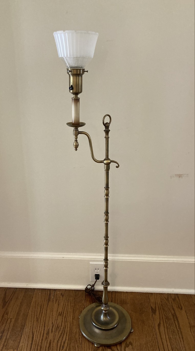 Heavy Brass Floor Lamp with Glass and Fabric Shades