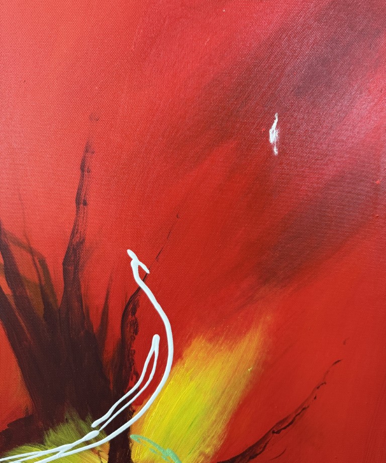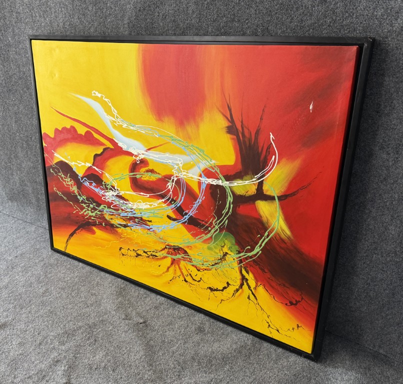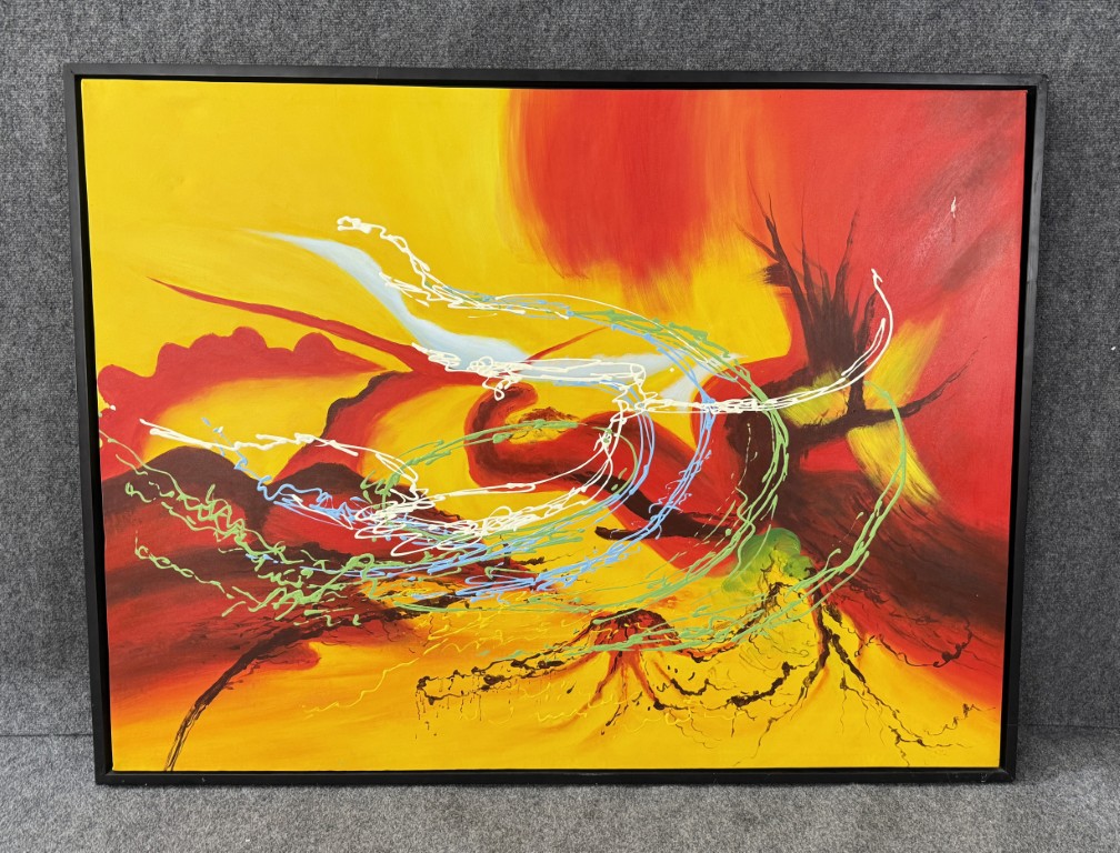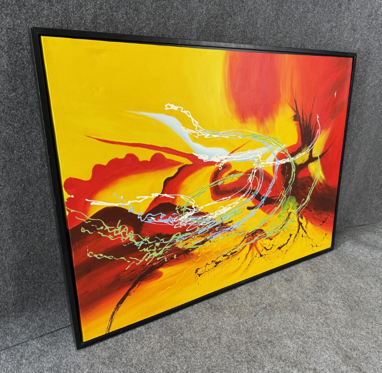 Large Modern Abstract Oil on Canvas in Red & Yellow