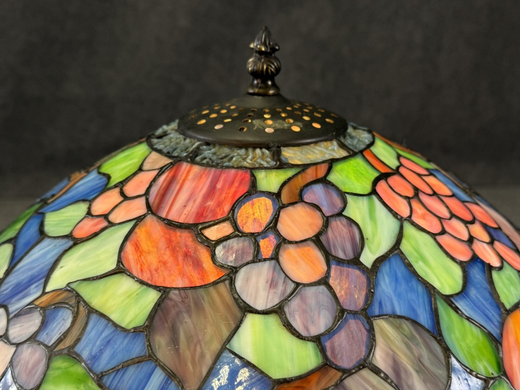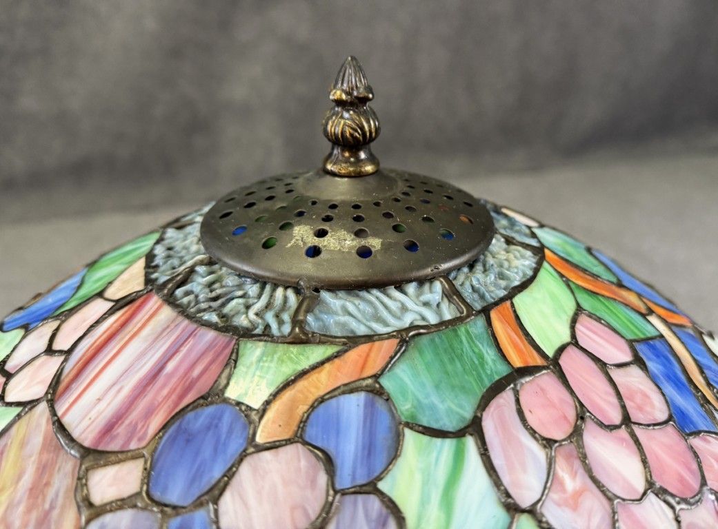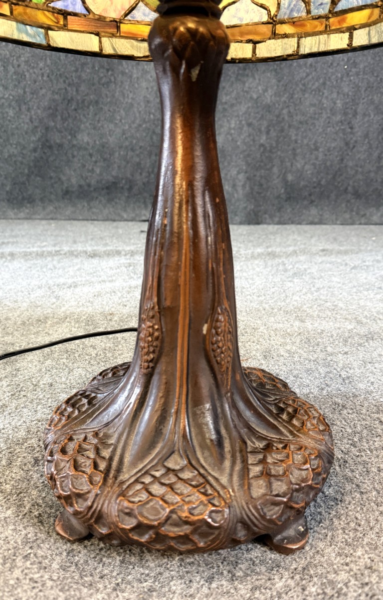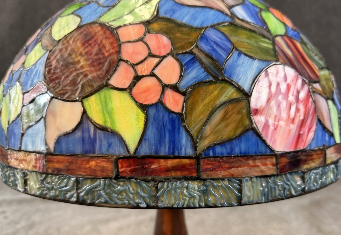 Large Tiffany Style Leaded Glass Lamp with Tree Trunk Base