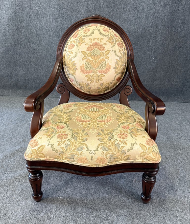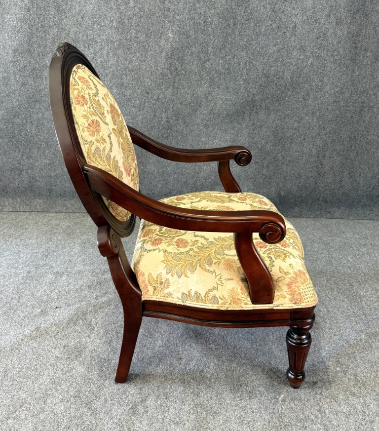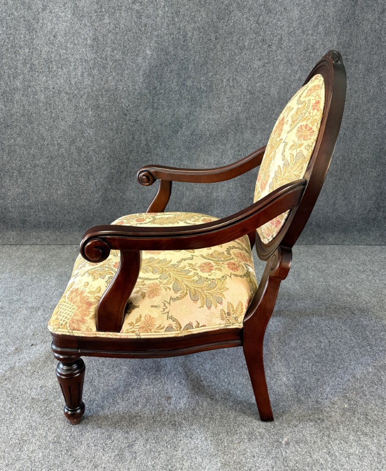 Louis XVI Style Floral Upholstered Fauteuil Armchair