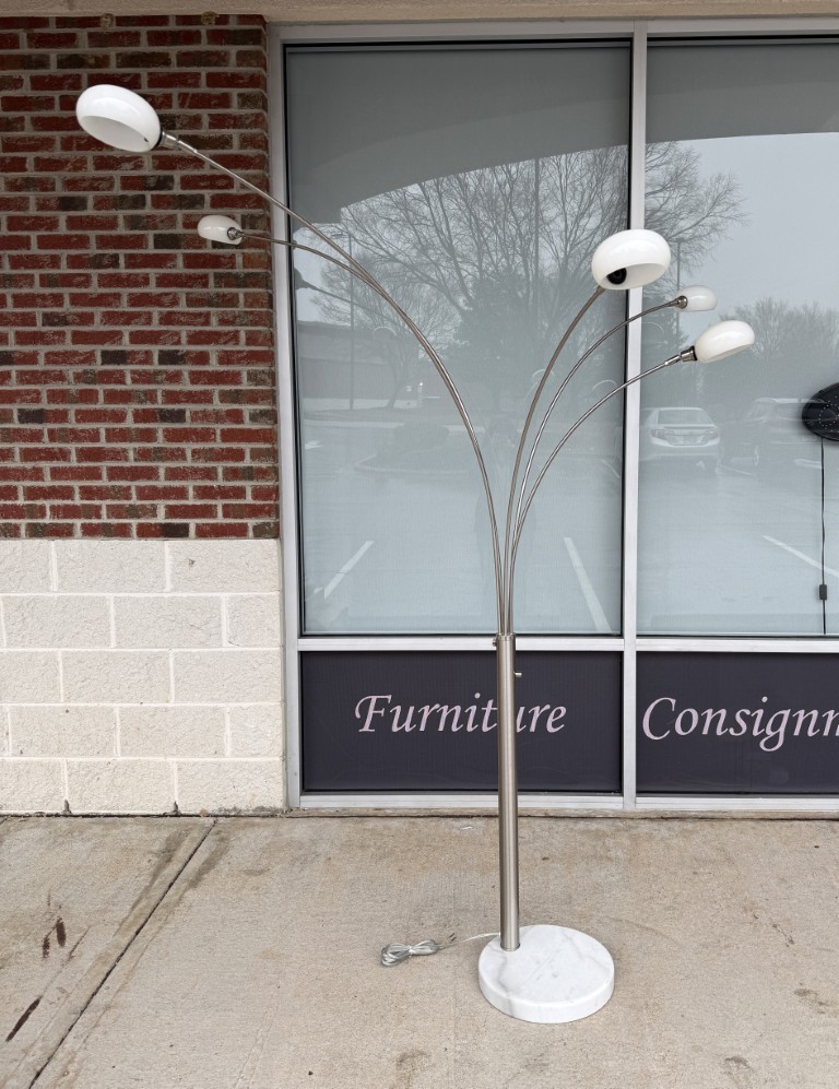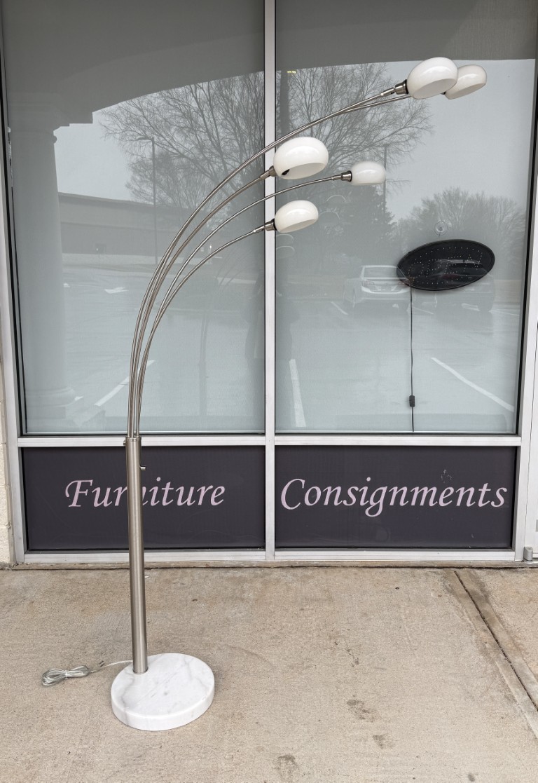 Modern Brushed Steel 5-Light Multi-Arm Arc Floor Lamp with Marble Base