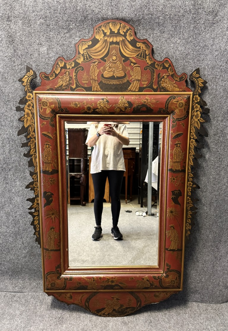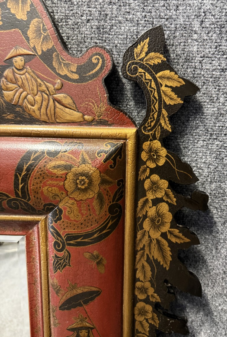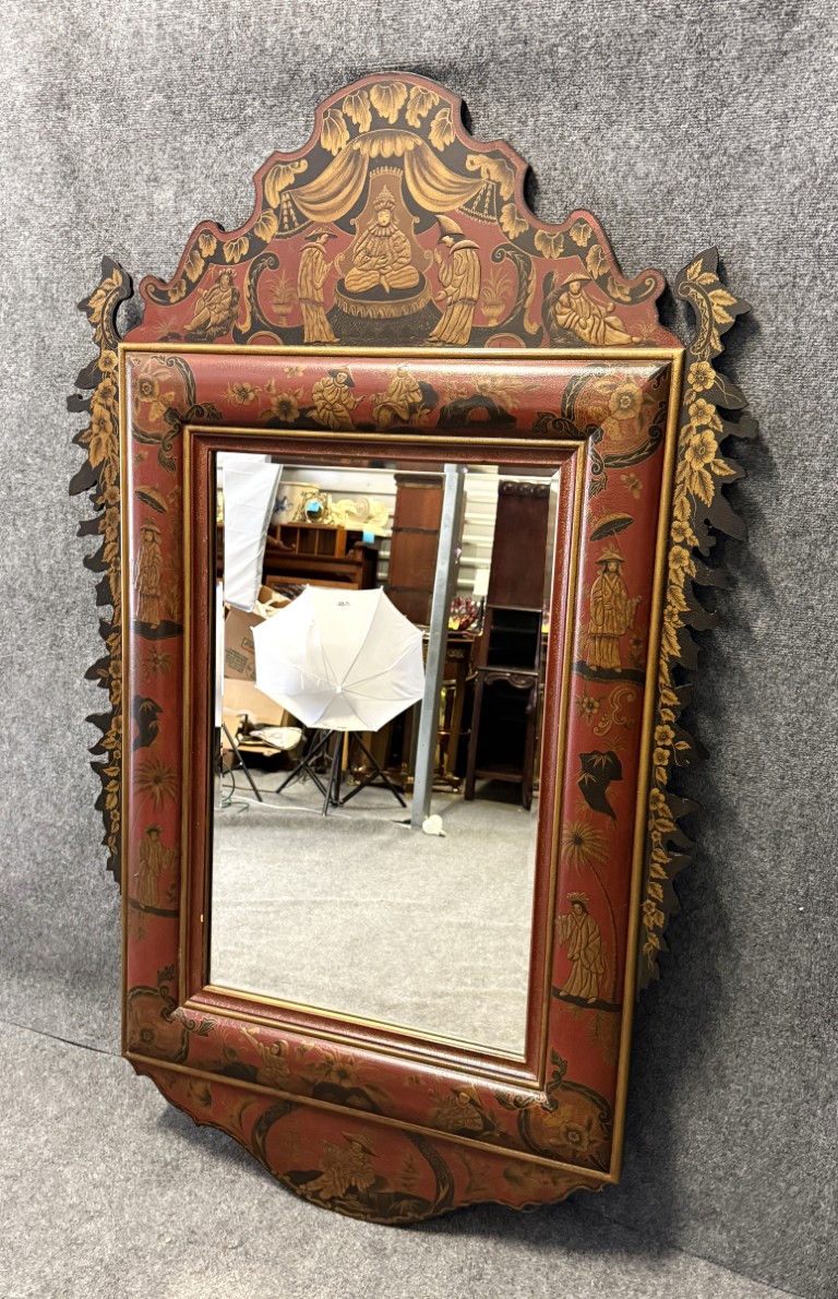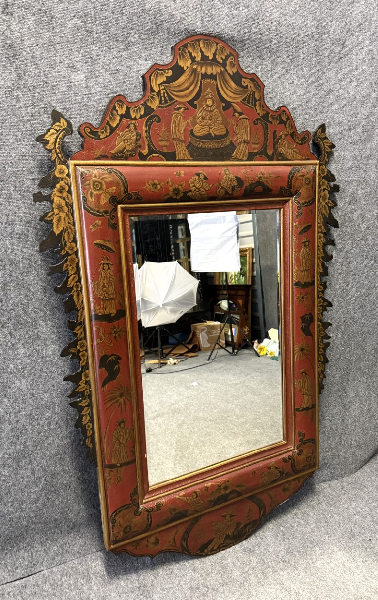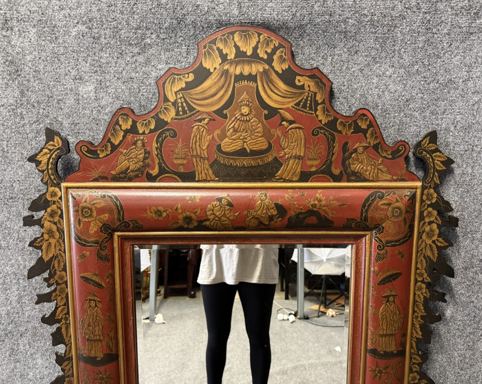 Monumental Theodore Alexander Black & Red Asian Mirror