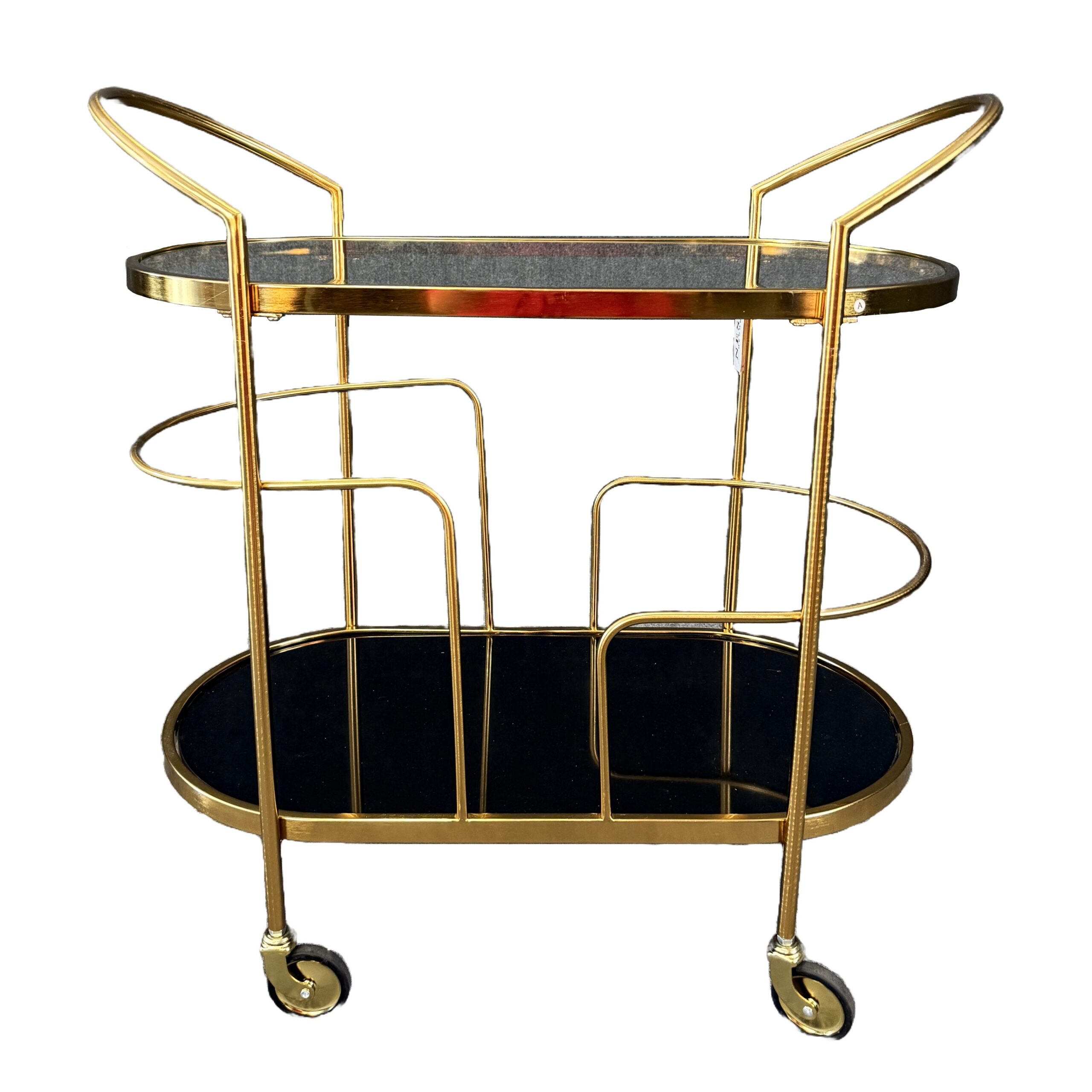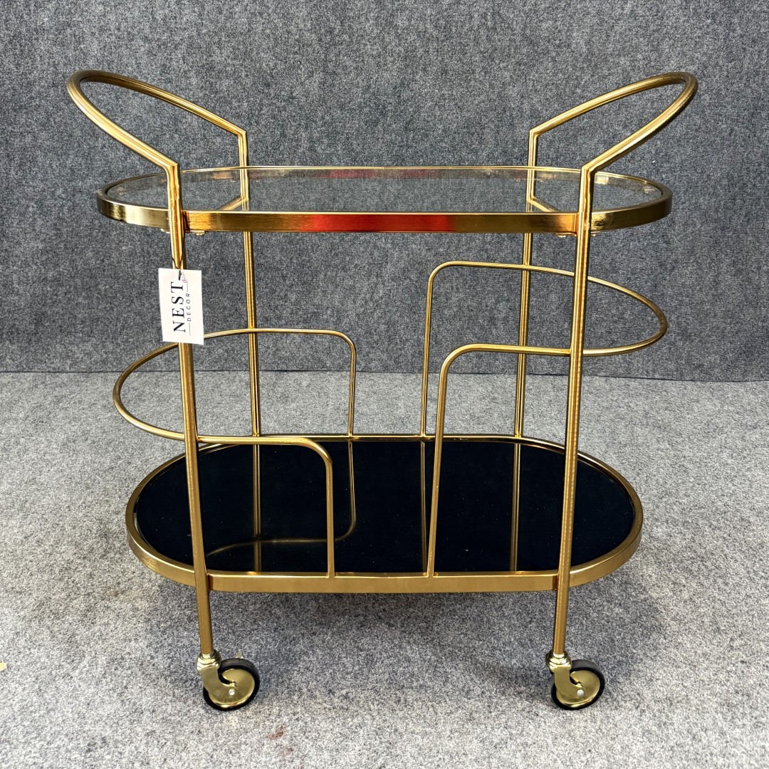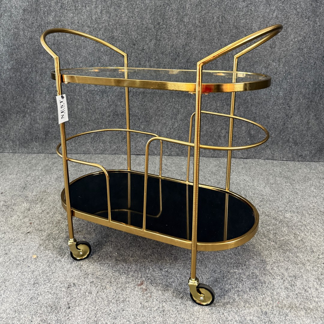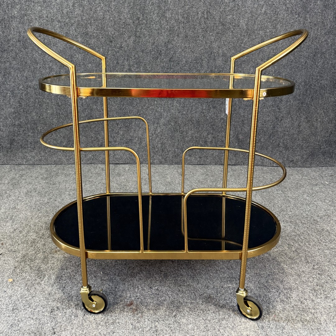 New Gold Bar Cart with Black Glass Base