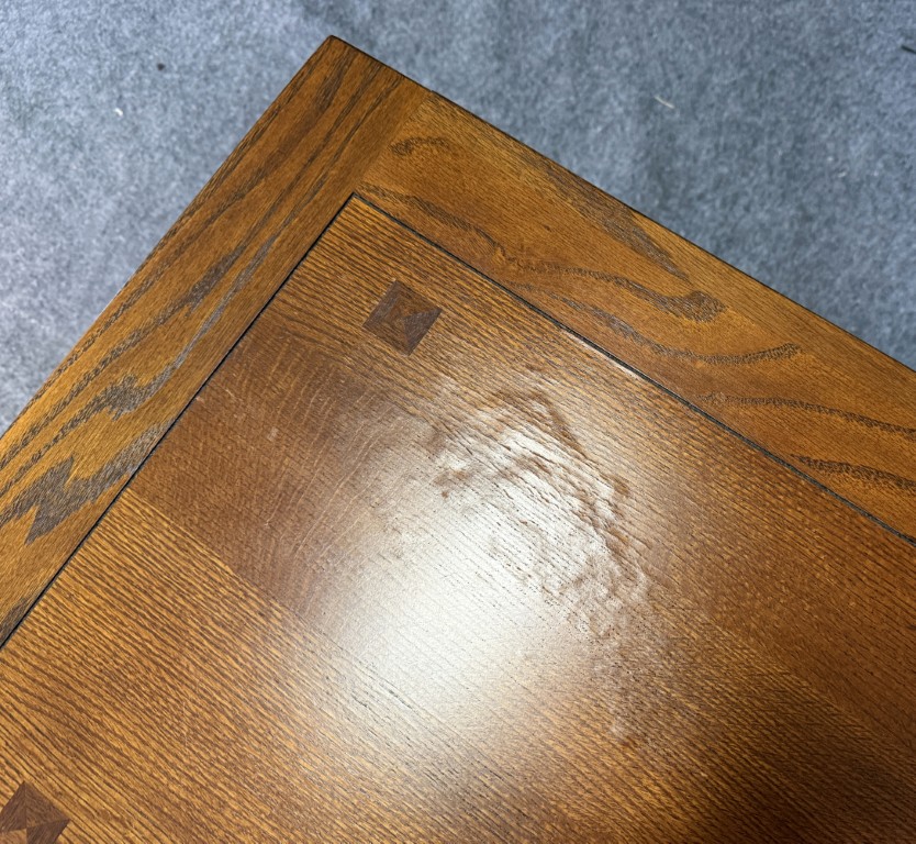 Your happiness with this item is of the utmost importance to us so please review the photographs carefully for condition. We endeavor to try and list any issues we may observe; we may not necessarily note all minor nicks and dings or we may simply miss something. Please inspect carefully to ensure your full happiness with this item. For this particular piece we found wear consistent with age and prior use, including some bubbling on the table top.
