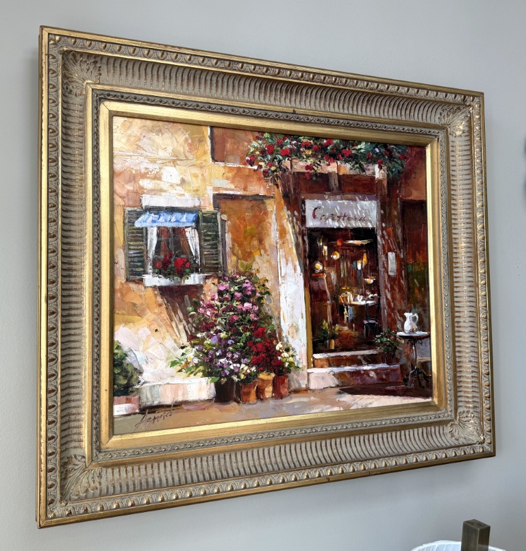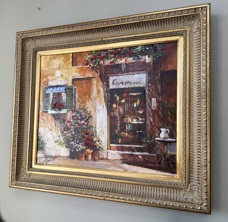 Oil on Canvas of Italian Cafe Signed Astrid