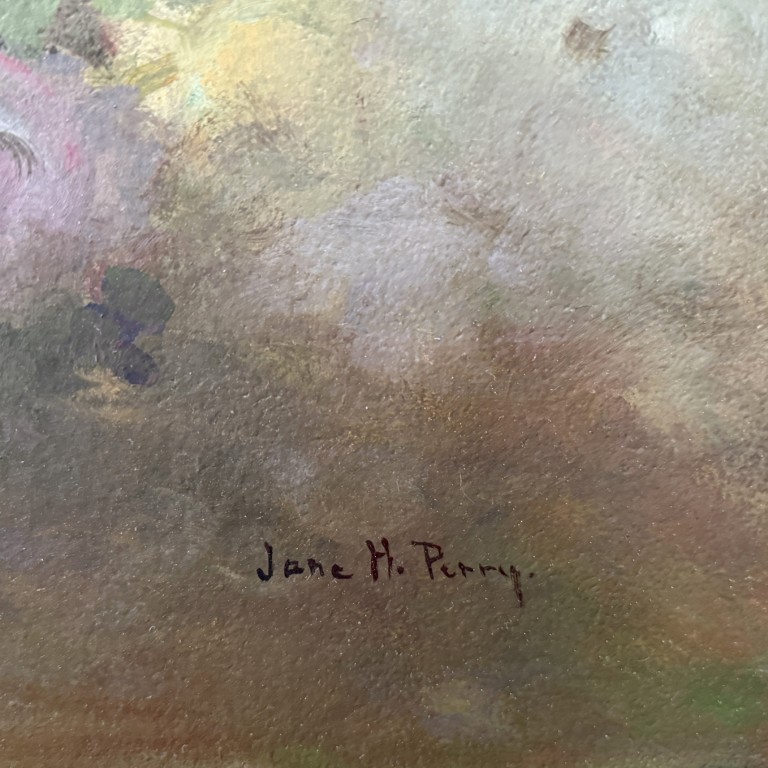 Original Mid-Century Floral Still Life Oil on Board by Jane H. Perry