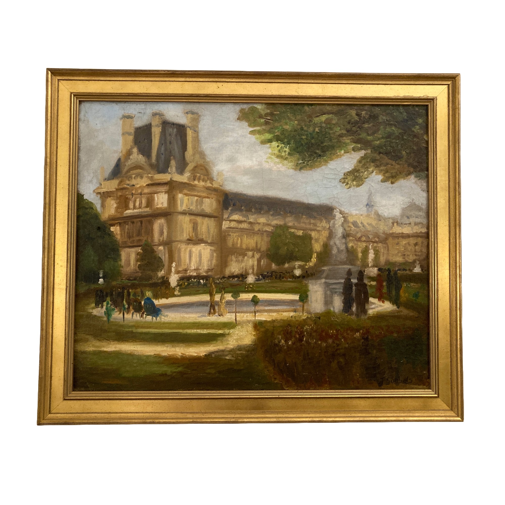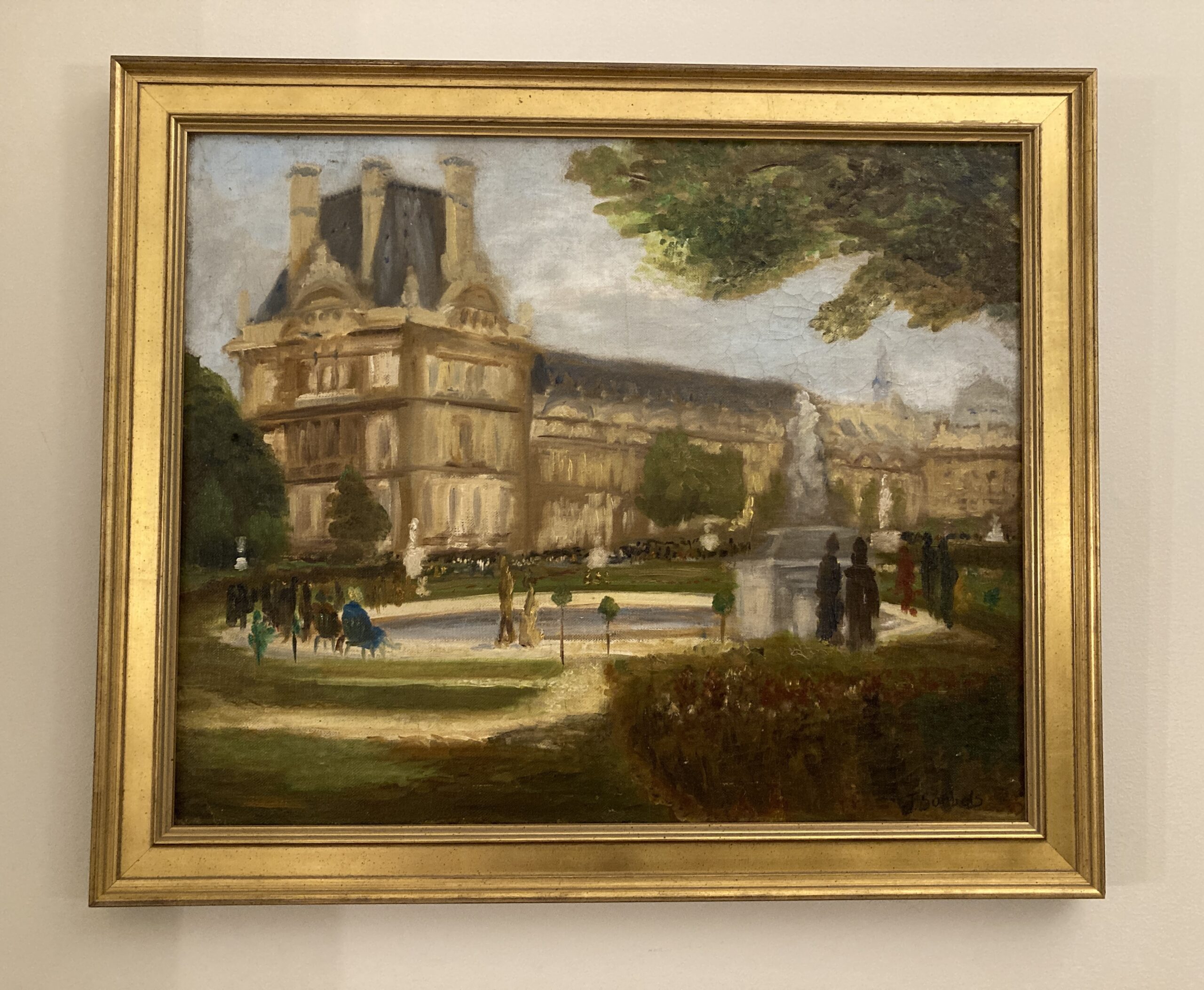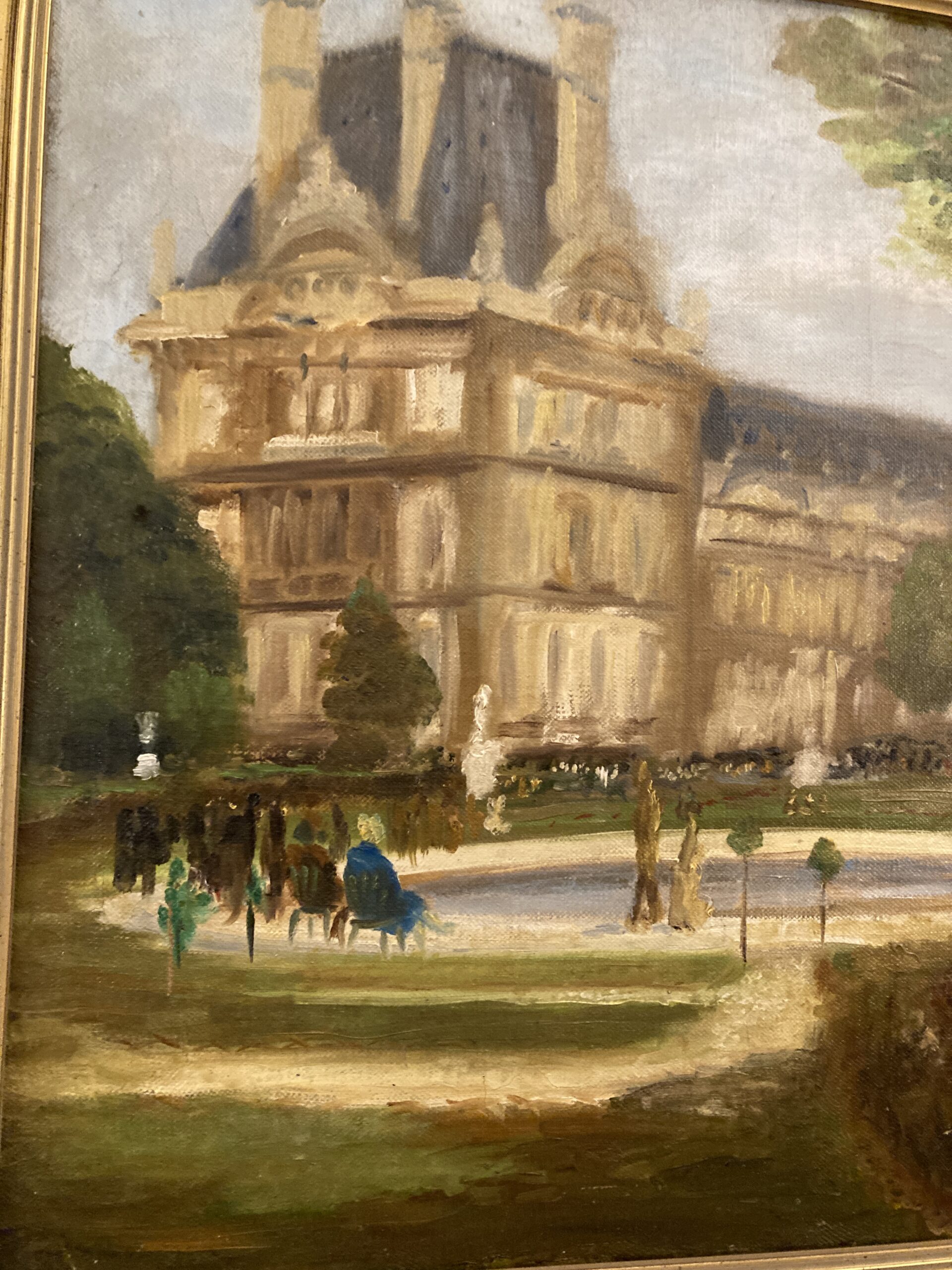 Original signed 20th century oil on board painting of the Louvre in Paris