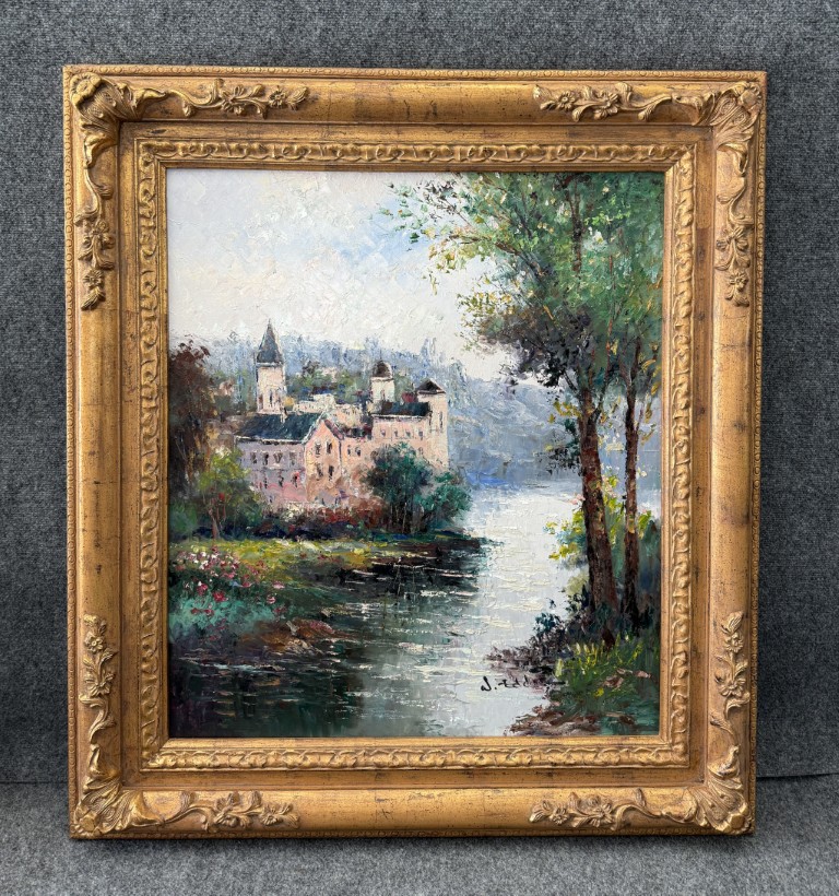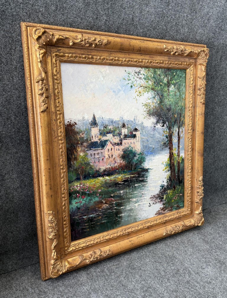 Original Oil on Canvas of Riverside Castle by W. Eddie