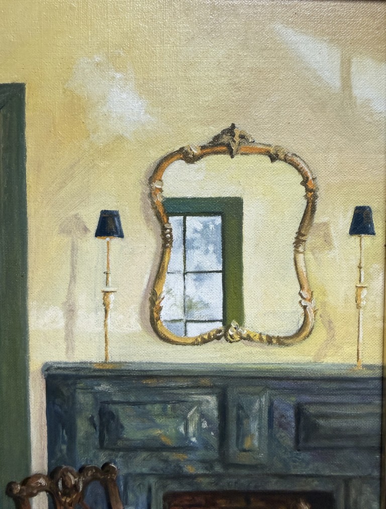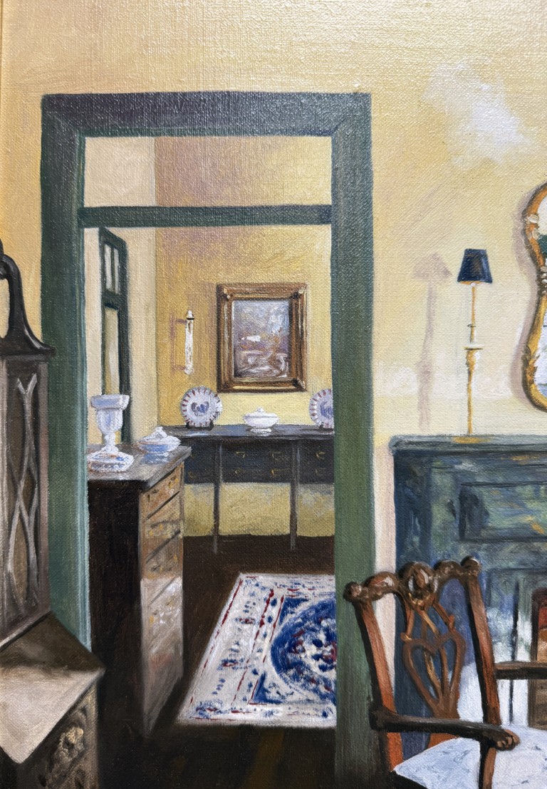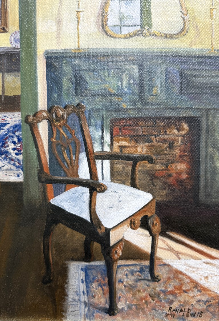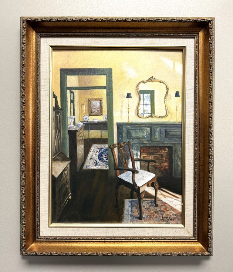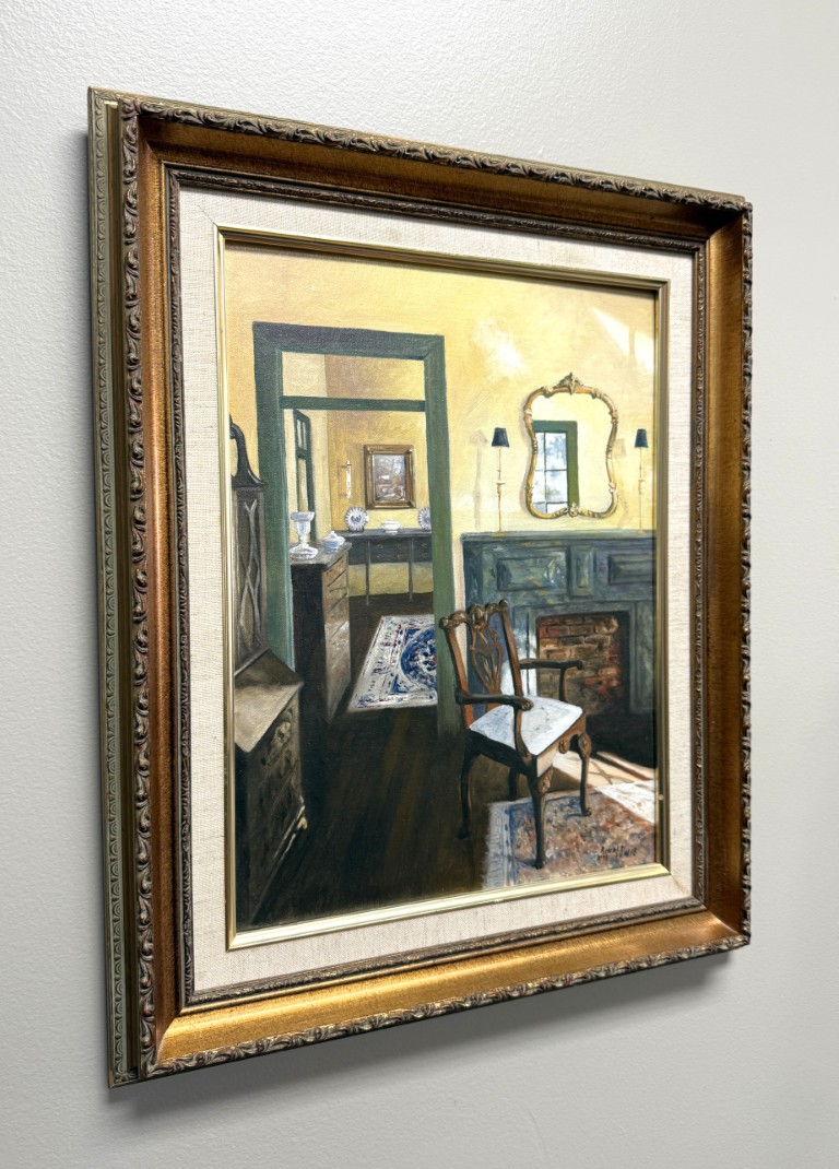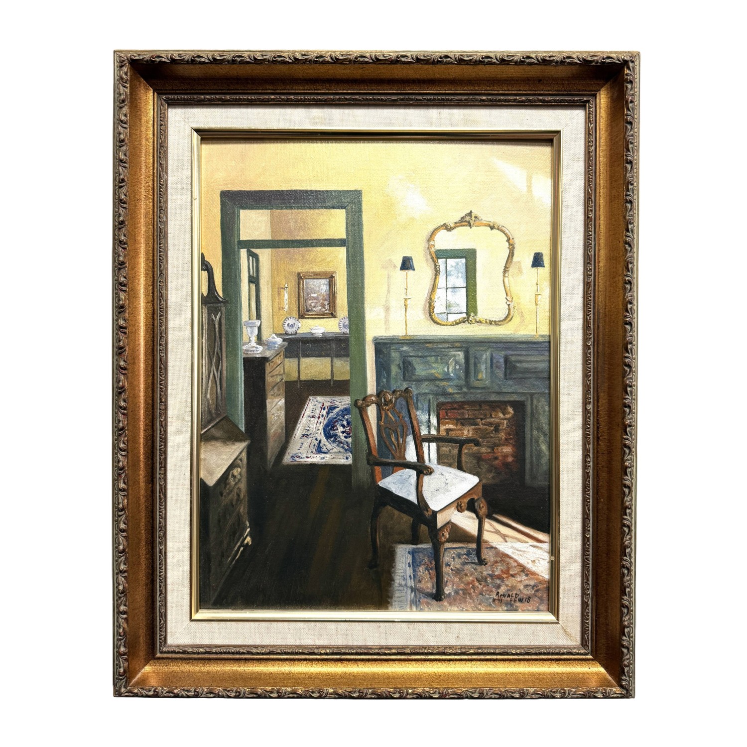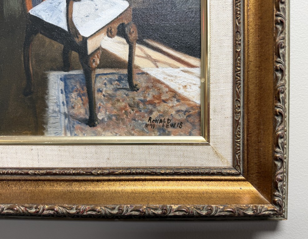 Original Parlor Scene Oil on Canvas by Listed Artist Ronald Lewis
