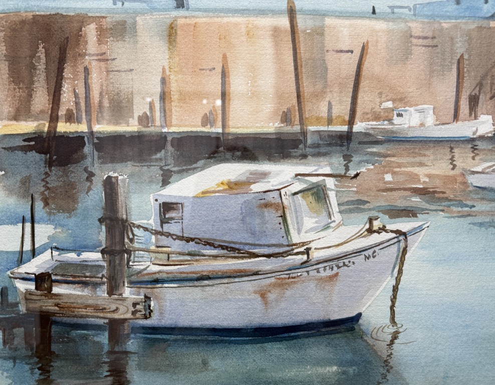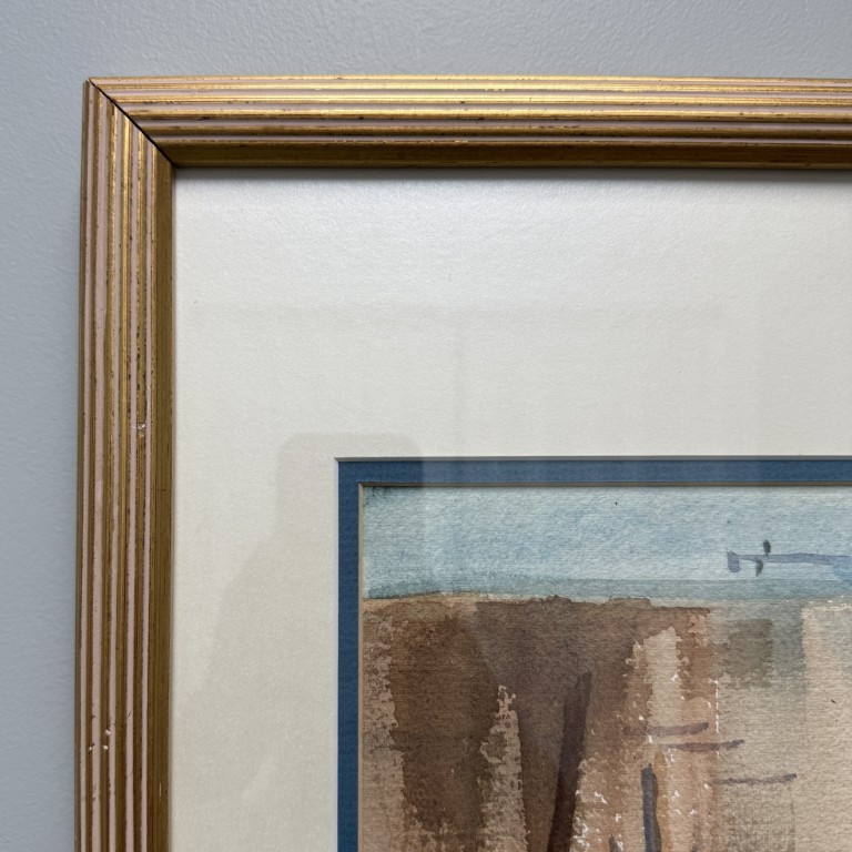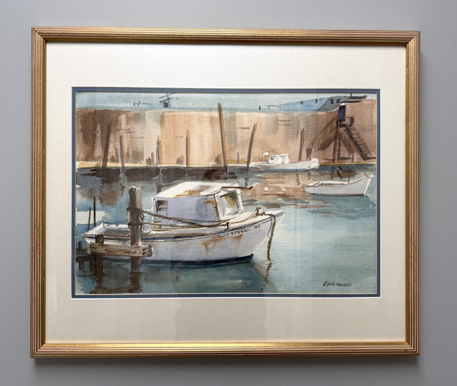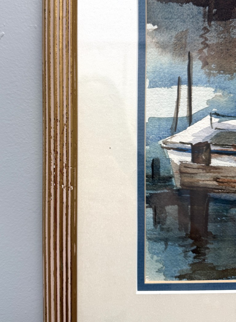 Original Signed Watercolor of Ship at Dock
