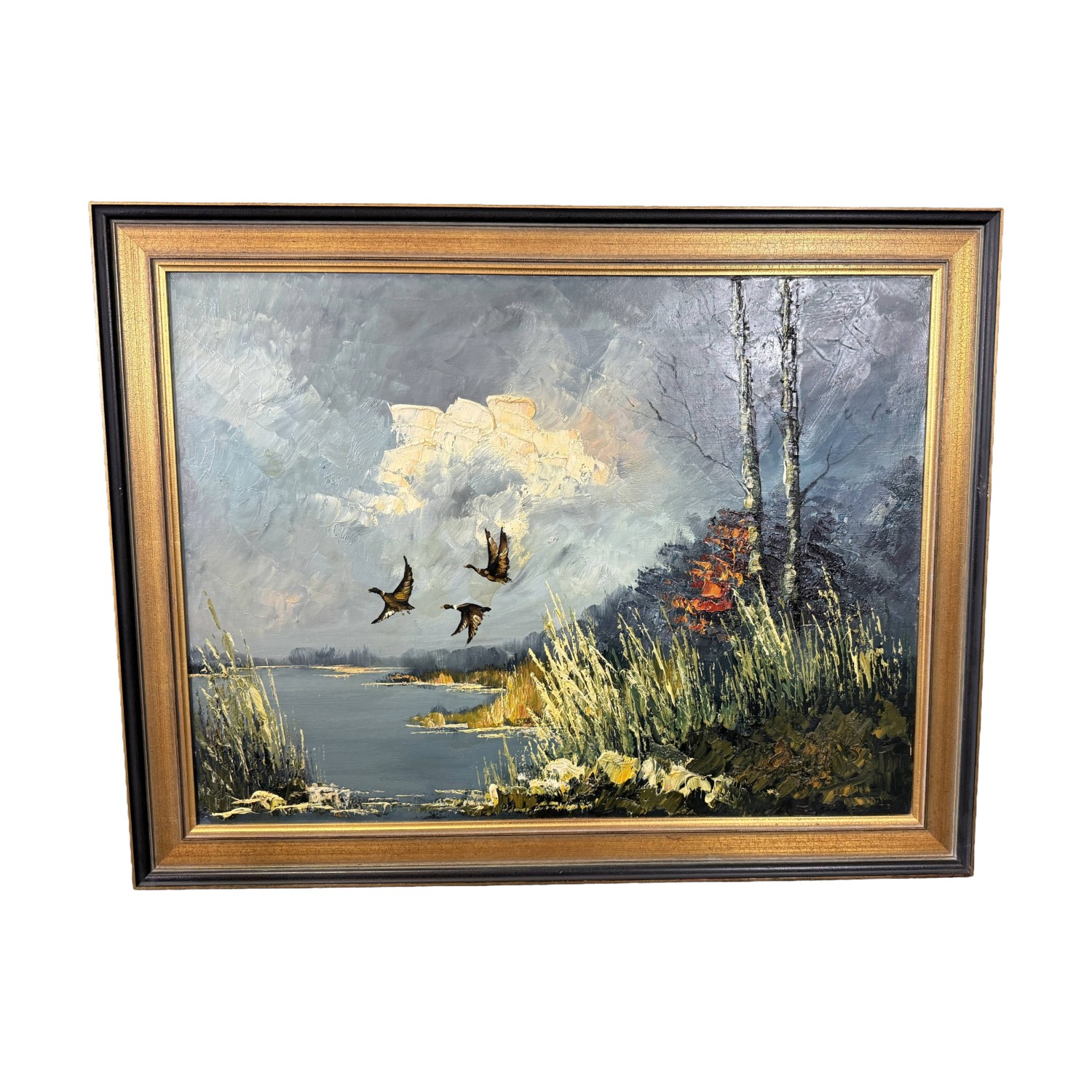 Original Vintage Oil on Canvas of Ducks in Flight